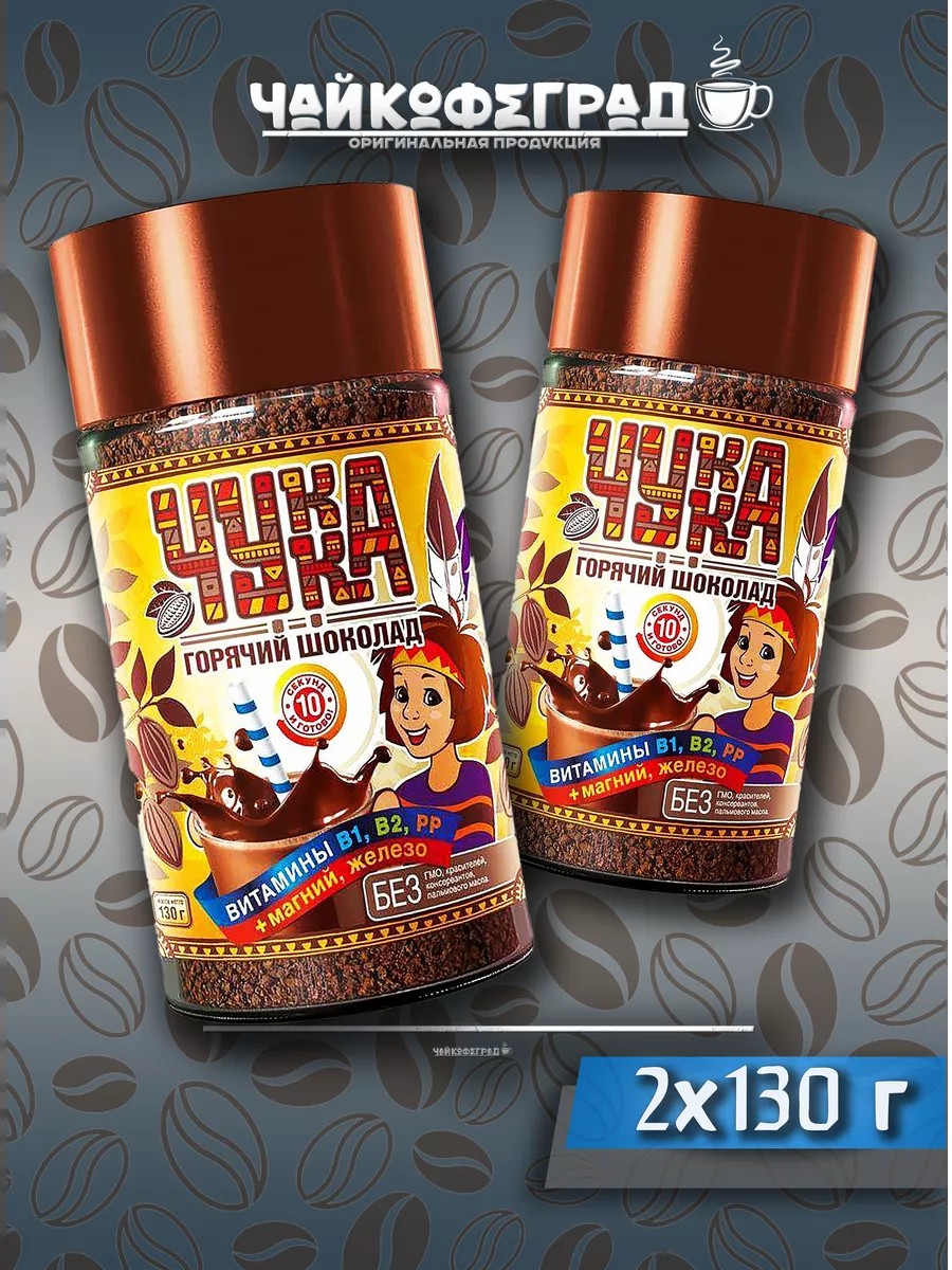 Какао-напиток растворимый Чукка Горячий шоколад 130г - это полезное шоколадное лакомство, приготовленное на основе какао-порошка и обогащенное витаминно-минеральным премиксом. Напиток содержит витамины В1, В2, В6 и РР, магний, железо и фолиевую кислоту. Как и чоколатль древних индейцев Центральной Америки, он наполняет жизненной энергией и поднимает настроение, восстанавливает силы после учебы, работы и тренировок. Всего за 10 секунд растворяется в холодном или горячем молоке. Не содержит ГМО, красителей, консервантов и пальмового масла.