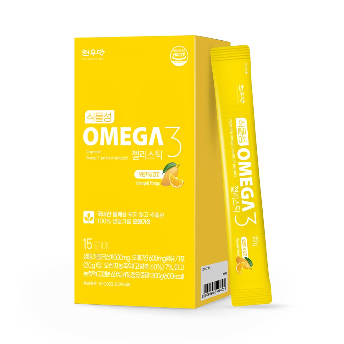 Each jelly stick contains over 0.02oz of omega-3, making it easy to enjoy a high daily intake—just one stick in the morning and one in the afternoon. Made with raw perilla oil extracted from 100 Korean perilla seeds, it offers a healthy source of plant-based omega-3s. With a tasty orange and mango flavor and a convenient jelly stick form, it's a delicious way for all ages to get their omega-3s. This is the first patented plant-based omega-3 jelly stick containing raw perilla oil. Produced in trusted facilities certified by Korea's HACCP (Hazard Analysis and Critical Control Point) system for food safety. All Ingredients Purified Water, Granulated Sugar, Orange Concentrate (Solids = 60 , Orange [USA] 100 ) 7 , Fructooligosaccharide (Solids = 70 ), Crystalline Fructose, Perilla Oil (Korea) 5 , Flavoring (Orange Flavor), Mango Concentrate (Solids = 60 , Mango [Israel] 100 ), Flavoring (Mango Flavor), Gum Mix (Xanthan Gum, Agar, Carrageenan, Locust Bean Gum, Tamarind Gum, Dextrin, Tara Gum), Gum Arabic, Sodium Caseinate, Citric Acid, Malic Acid, Soy Lecithin, Refined Salt, Multivitamin Mineral Mix (Puracal, Vitamin C, Mixed Tocopherols [Vitamin E], Zinc Gluconate, Ferrous Fumarate, Niacinamide, Pyridoxine Hydrochloride [Vitamin B6], Thiamine Hydrochloride [Vitamin B1], Mixed Retinyl Acetate [Vitamin A], Vitamin B, Folic Acid), Annatto Color, Grapefruit Seed ExtractProduced in trusted facilities certified by Korea's HACCP (Hazard Analysis and Critical Control Point) system for food safety. This is the first patented plant-based omega-3 jelly stick containing raw perilla oil. With a tasty orange and mango flavor and a convenient jelly stick form, it's a delicious way for all ages to get their omega-3s. Made with raw perilla oil extracted from 100 Korean perilla seeds, it offers a healthy source of plant-based omega-3s. Each jelly stick contains over 0.02oz of omega-3, making it easy to enjoy a high daily intake—just one stick in the morning and one in the afternoon.