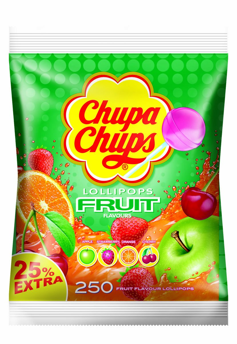 CHUPA CHUPS FRUIT: 250 refill bags in 4 delicious flavours. Unparalleled fruit enjoyment on the stem in the varieties apple, strawberry, orange and cherry: Since 1958, the cult lollipops have been delighting adults and children alike and offer a huge selection of various flavours and creations. The 250 fruit lollipops in a practical refill bag make you want more and ensure the irresistibly sweet sucking pleasure in between. Whether for personal needs or for sharing at parties or office – thanks to the economy pack you have your favourite variety of Lollis always at hand. SNACKING WITH STYLE: The delicious companions are individually packaged and can be easily removed. At home, on the go, as a supply or on a break - the lollis are suitable for small snack enjoyment. The extra large bag offers delicious variety and therefore everything the heart desires. So there is something for every taste. Peep. Access Treat it! See for yourself and let yourself be carried away by the fruity intense taste explosion. Advantages: • EXTRA FRUITY: The bag contains the fruity delicacies of the cult lollipop. • XXL pack: Due to the useful refill bag, you always have the optimal supply at hand. • Quality: Chupa Chups Lollipops convince in all their variations with their intense taste. Notes: • Please always store in a cool and dry place. • The product does not replace a balanced and healthy diet. If there are any problems with one of our products, we ask you to contact our customer service at