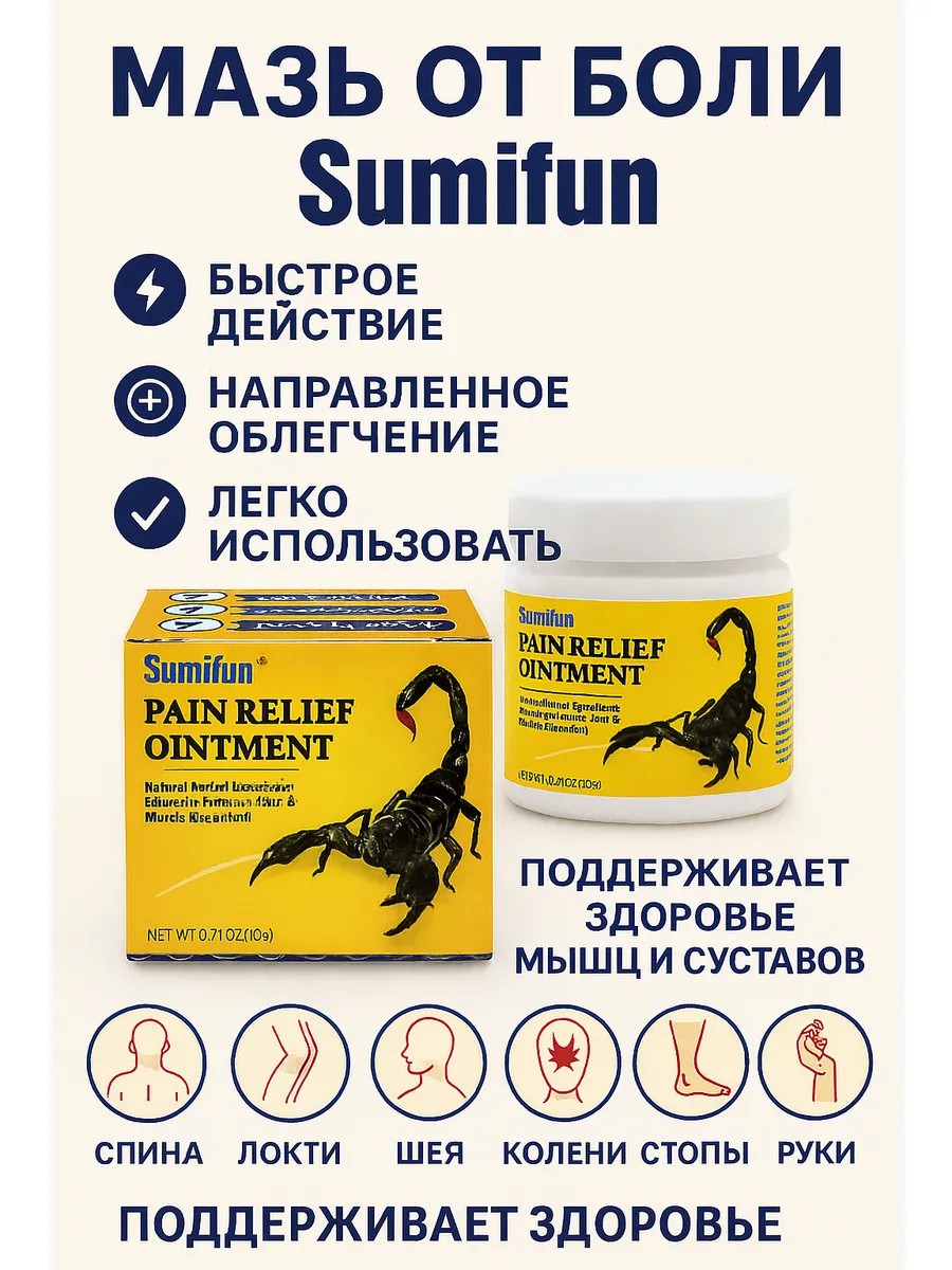 Scorpion Venom Pain Relief Ointment is an effective natural remedy for joints and muscles, designed to quickly relieve pain and reduce inflammation.