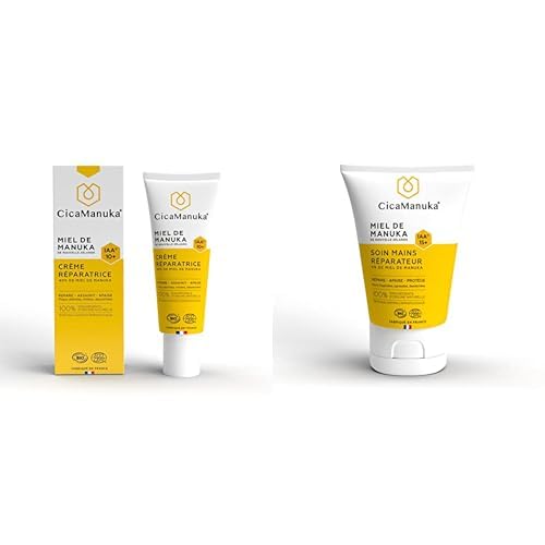 CICAMANUKA - Crème réparatrice au miel de Manuka IAA10 - Favorise la réparation des peaux abîmées et asséchées - Certifiée Bio - 40ml Soin mains réparateur au miel de Manuka IAA15 - 50ml