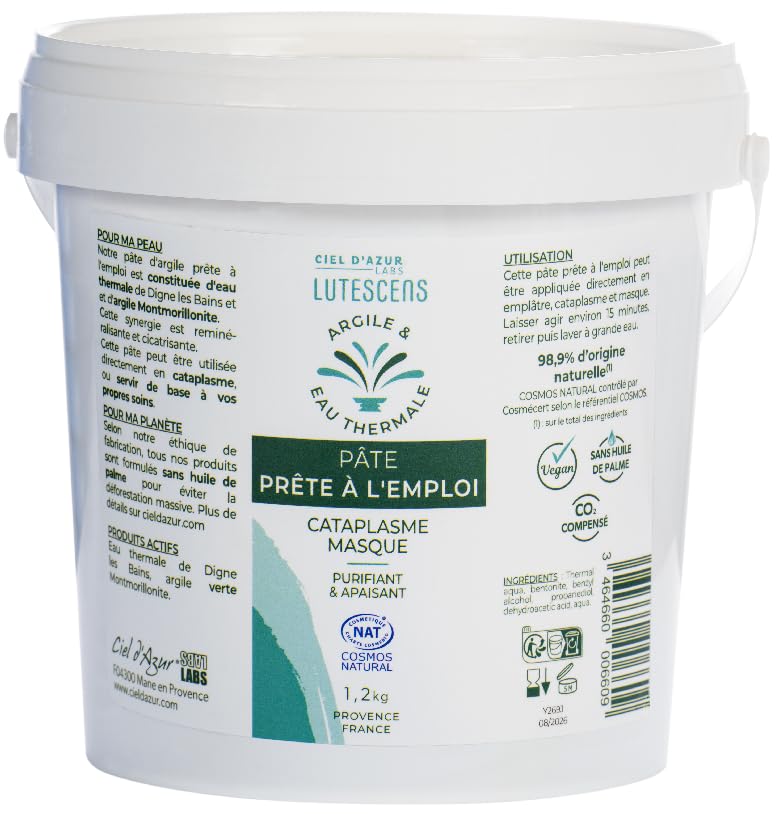 CIEL D'AZUR LABS - Pâte à l'Argile et à l'Eau Thermale prête à l'emploi - Naturel - Seau 1.2 kg