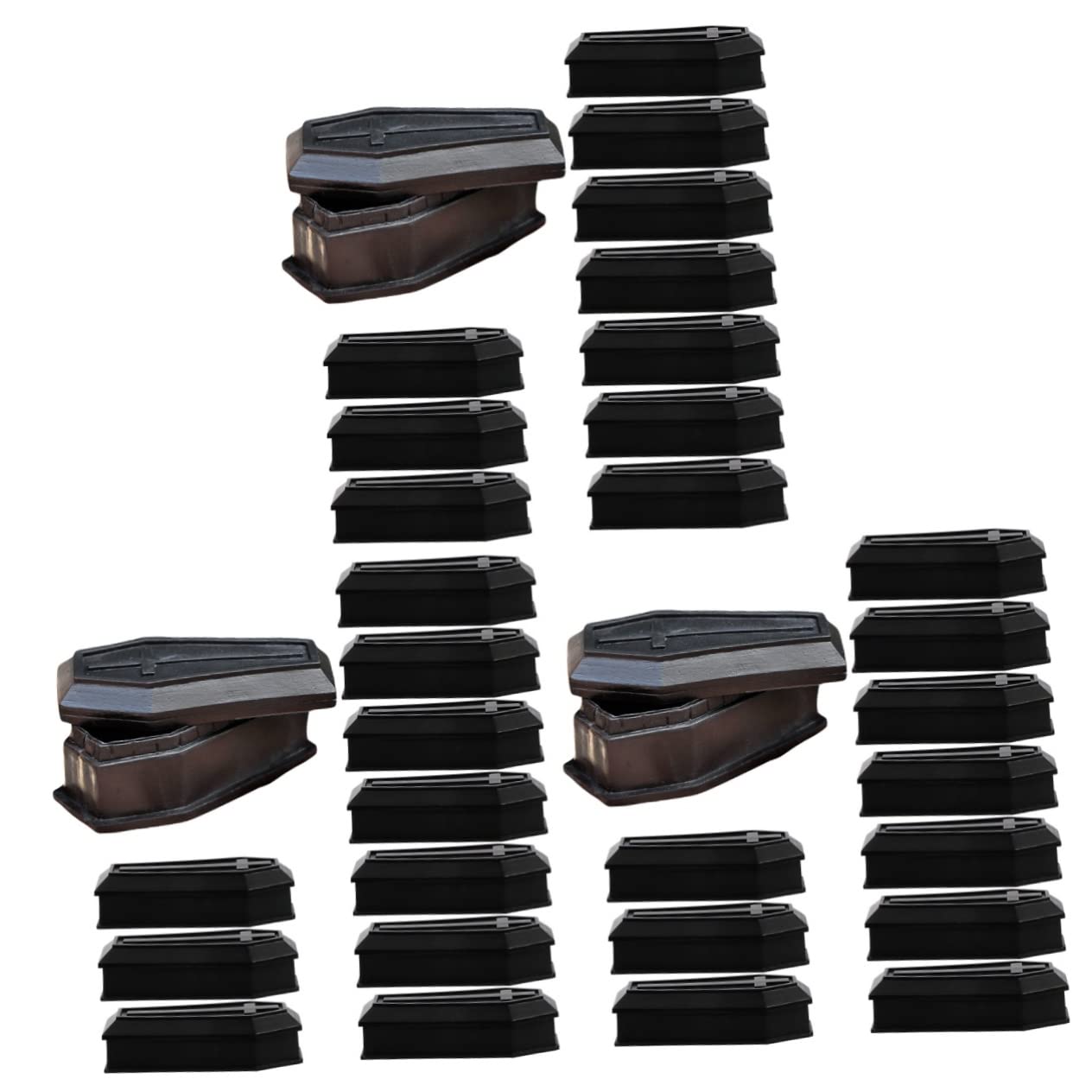 Package List 30 x Coffin Boxes Features - Color: Black pen stand for desk. - Material: Plastic small coffin box. - Size: 5.50X3.70X2.30cm/2.16X1.45X0.90inch desk decoration. - Fine workmanship creates delicate shape, it looks like real coffin that can be special decor for your party black coffin box. - The classic and chic coffin treat box with lid is good choice to add festival atmosphere, adding more fun to the party candy decor. - It is not only decoration, but also can be used as small candy box, unique and decorative for you halloween decor. - Adopting from good plastic material, which is lightweight and durable halloween candy holder. - Recommended prank props coffin box for carnival, bars, nightclubs, haunted house and parties funny prank prop. Goods Description Halloween Coffin props Decorative coffin treat candy box makes really eerie atmosphere and bring you unforgettable festival atmosphere.coffin figurine Good workmanship creates fine shape, it looks like a real coffin that can be a special decor for your HalloweenTiny containers: halloween decoration: black coffin realistic appearance, is an excellent play what it shopping decorations, creating a creepy feeling. Coffin halloween decorations: practical design: coffin box model with lid, you can put candy, small gifts, etc. inside. can also be a beautiful and practical storage container. Halloween gifts: material: made of plastic material, excellent craftsmanship and safe to use. not easy to fade, lightweight and portable, reusable. Small coffin: multipurpose: this plastic coffin display box with lid design can be used as a small storage box, you can put candies, jewelry, lipsticks, rings, earring, stones, gifts, etc. Coffin halloween prop: it will make you spend a memorable halloween, our product is for your halloween.