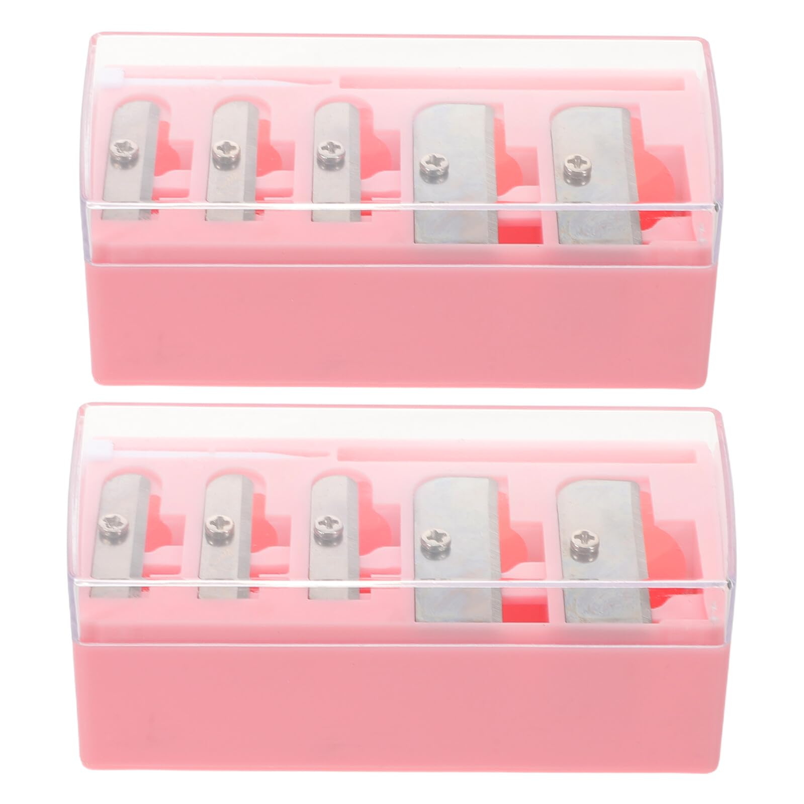 Ciieeo Lot de 2 Taille-crayons Cosmétiques à 5 Trous, Taille-crayon pour Eyeliner à Pointe Longue, avec Couvercle de Protection, Format de Poche, Couleur Rose, Compatible Crayons
