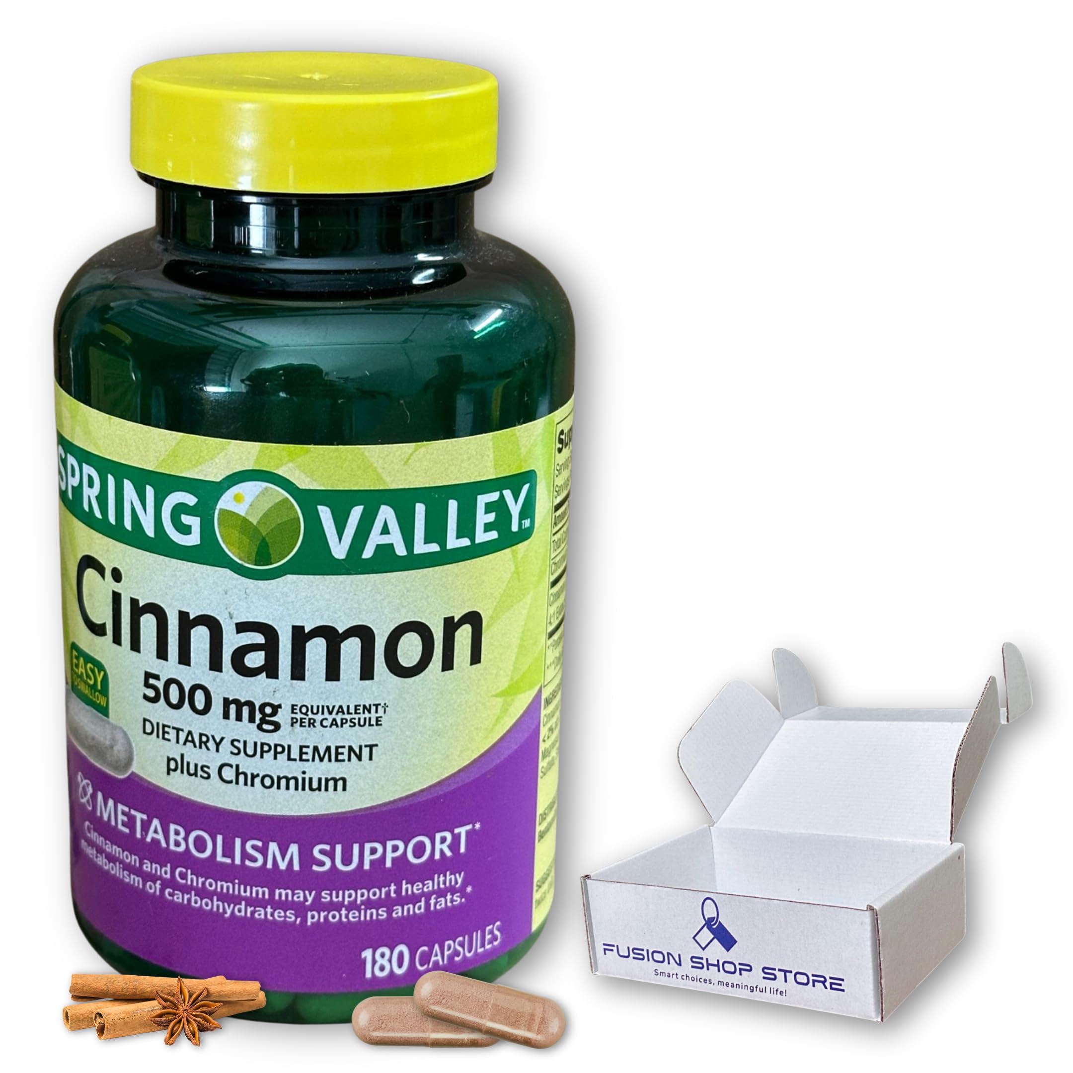 Cinnamon Capsules- 500mg Plus Chromium 180ct (Pack of 1) Boxed by Fusion Shop Store