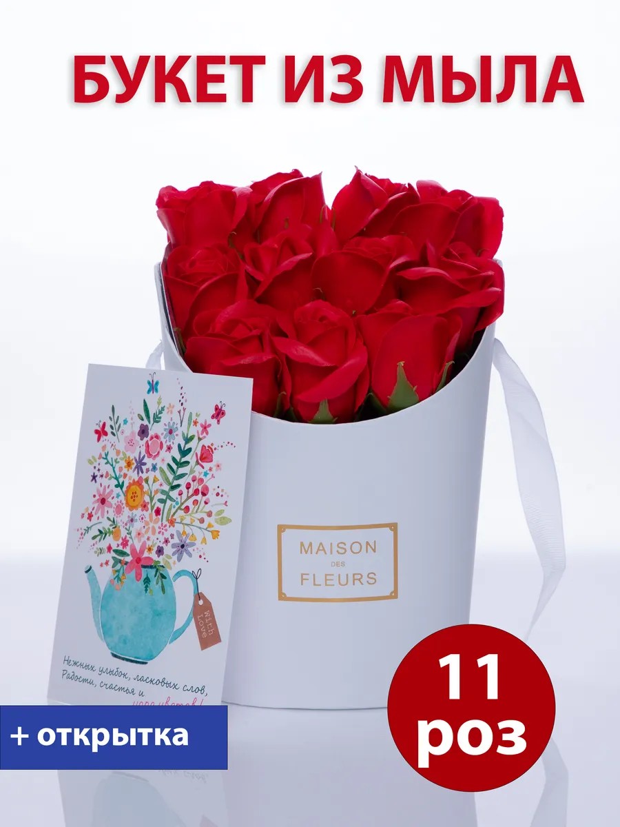 | Package contents | Bouquet of soap roses with a postcard |