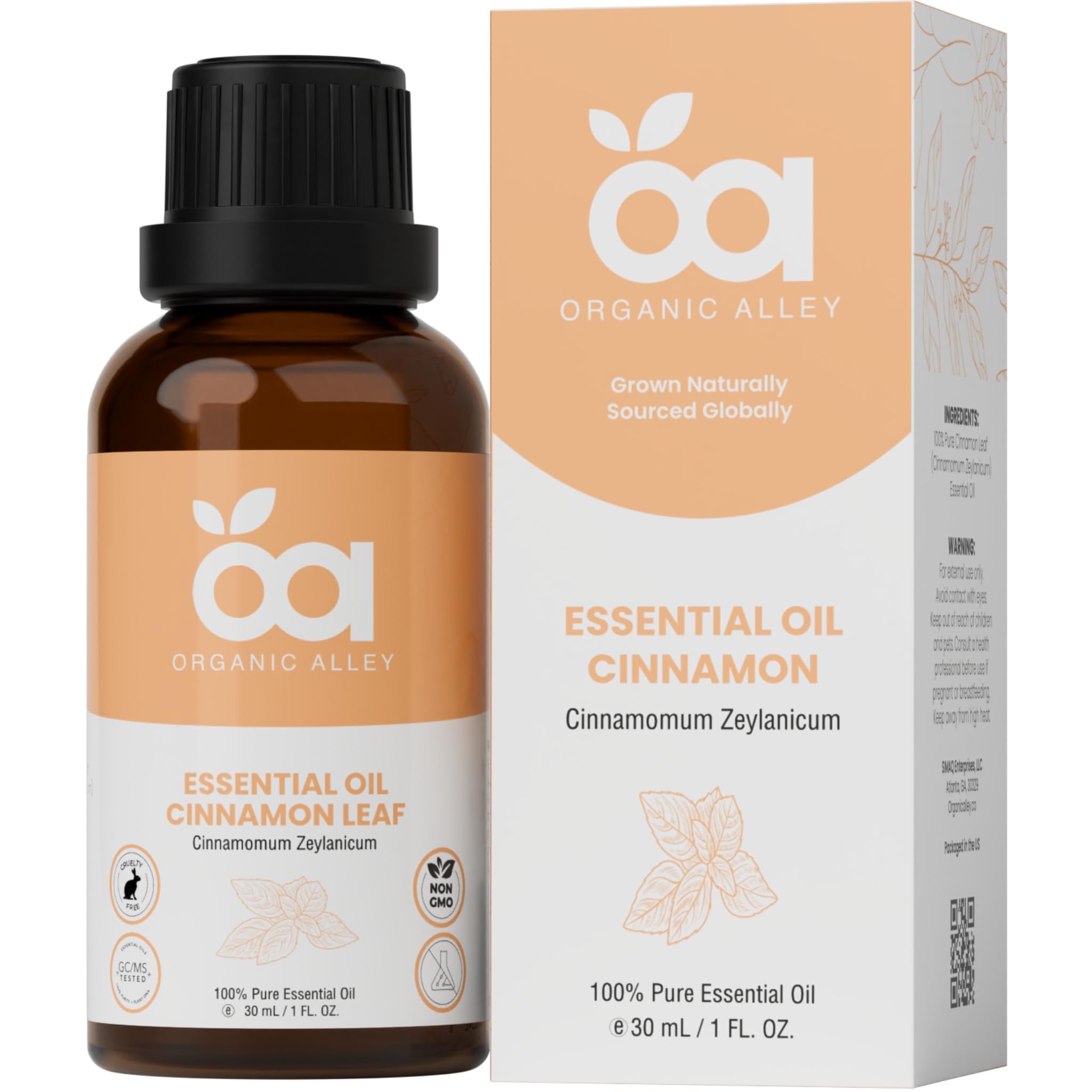 Eco-Friendly Cruelty-Free: Organic Alley's commitment to sustainability means each bottle is responsibly sourced, cruelty-free, and produced with eco-conscious practices, so you can enjoy your essential oils guilt-free. Therapeutic Benefits for Mind Body: Cinnamon leaf oil is celebrated for its therapeutic qualities, helping to relieve stress, elevate mood, and create a calming environment that promotes emotional and physical well-being. Multi-Purpose Essential Oil: Ideal for a wide range of uses: enhance DIY beauty treatments, add to massage oils, elevate bath soaks, or use as a natural cleaning solution. Perfect for diffusers to bring a soothing, aromatic atmosphere to your home. Rich, Invigorating Scent: Experience the comforting warmth of cinnamon leaf's naturally spicy fragrance, perfect for aromatherapy, massages, or creating a welcoming, cozy ambiance in any room. 100 Pure, Undiluted Cinnamon Leaf Essential Oil: Sourced from the finest Cinnamomum Verum and Cinnamomum Zeylanicum plants, Organic Alley's cinnamon leaf oil offers unmatched purity and potency, capturing the rich, authentic essence of true cinnamon.