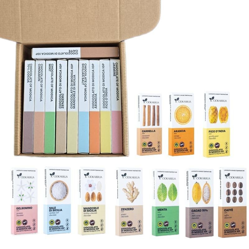 CIOKARRUA Modica IGP Chocolate Tablets Collection 10 Assorted Flavors Artisanal Lactose Free Gluten Free