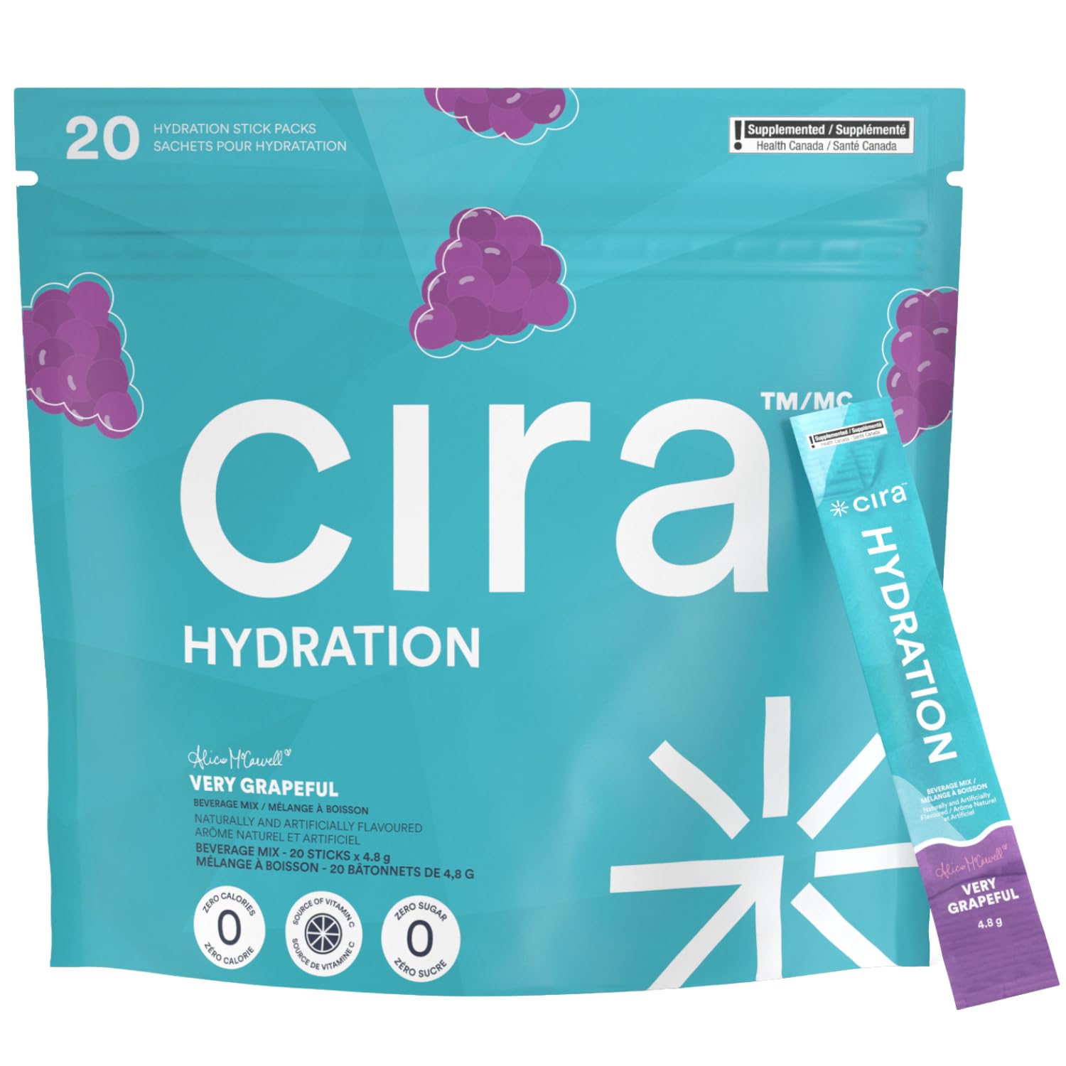 Cira Hydration Electrolytes Packets - Electrolyte Powder Naturally Flavoured & Sweetened w Stevia On-The-Go Hydration Packets w Himalayan Salt Magnesium Potassium - Very Grapeful 20 Servings