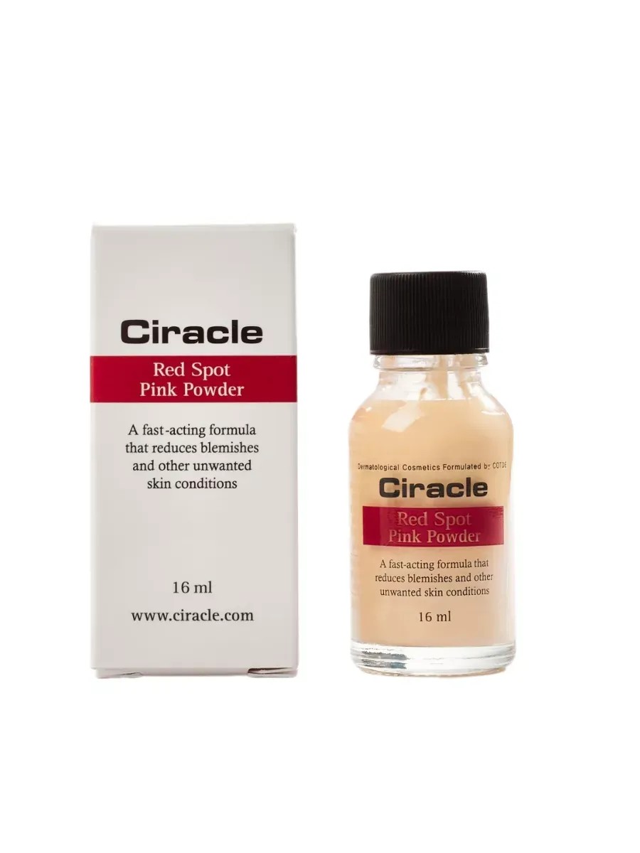 Ciracle, Red Spot Pink Powder, 16 ml. Calamine eliminates redness, reduces itching and irritation, and disinfects the skin. Glycolic and salicylic acids exfoliate dead skin cells, stimulate tissue regeneration, eliminate age spots, and effectively fight bacteria. This express treatment with an immediate healing effect will become an indispensable aid in treating problem skin. Directions: Do not shake before use. Apply the pink powder topically to affected areas with a cotton swab overnight. Rinse in the morning.