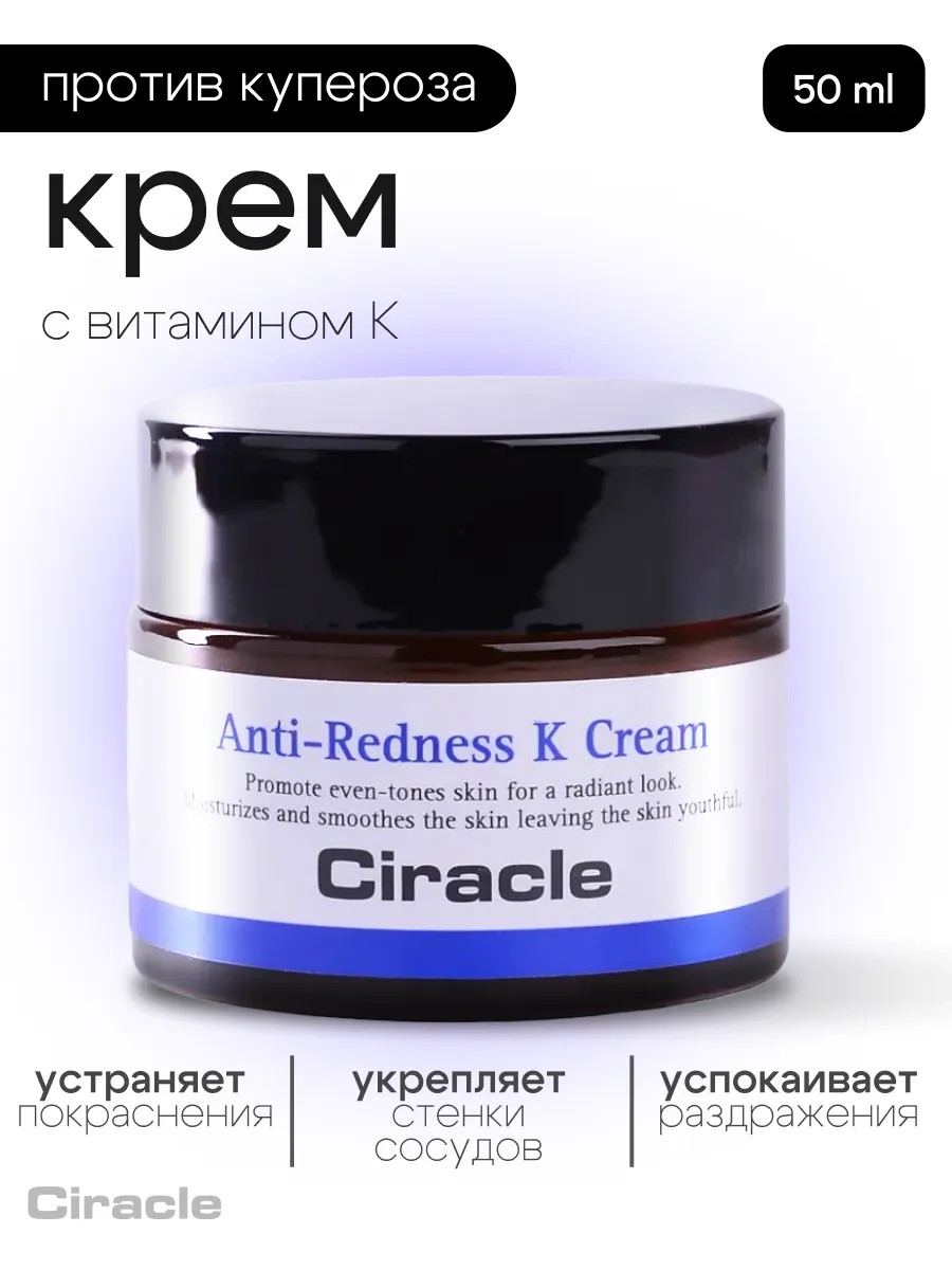 Корейский крем для лица против купероза Ciracle Anti-Redness K Cream - важный этап ежедневного ухода за сухой, чувствительной, проблемной кожей, склонной к пигментации, высыпаниям, покраснениям. Крем против купероза снимает раздражение, питает, увлажняет, выравнивает микрорельеф и тон кожи, разглаживает морщинки, улучшает микроциркуляцию.