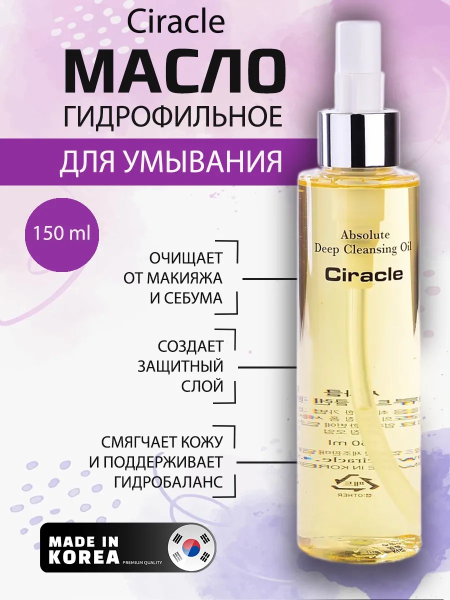 Гидрофильное масло с экстрактом камелии Absolute Deep Cleansing Oil – мягкое средство которое имеет превосходный очищающий эффект. Средство используется на первом этапе очищения кожи: удаляет остатки декоративной косметики, сужает поры, сохраняет свежесть и молодость. Подходит для снятия макияжа с глаз, отлично справляется с тушью, не щиплет глаза. Корейское масло для лица оказывает многоплановое действие: предотвращает угри, акне и разные воспалительные процессы. Приятно пахнет, экономичное. Химическая основа, содержащаяся в косметическом масле, абсолютно безвредна для кожи, способствует повышению эффективности благодаря глицериновой и спиртовой основе. Такие вещества являются растворимой базой для растительных экстрактов, масел и витаминов, поэтому они требуются для улучшения проникновения в кожу и действия полезных веществ. Масло зеленого чая рекомендуется для чувствительной кожи. Оно очень мягкое и успокаивающее. Применив продукт от южнокорейской компании Ciracle, вы почувствуете бодрящую свежесть и чистоту кожи.