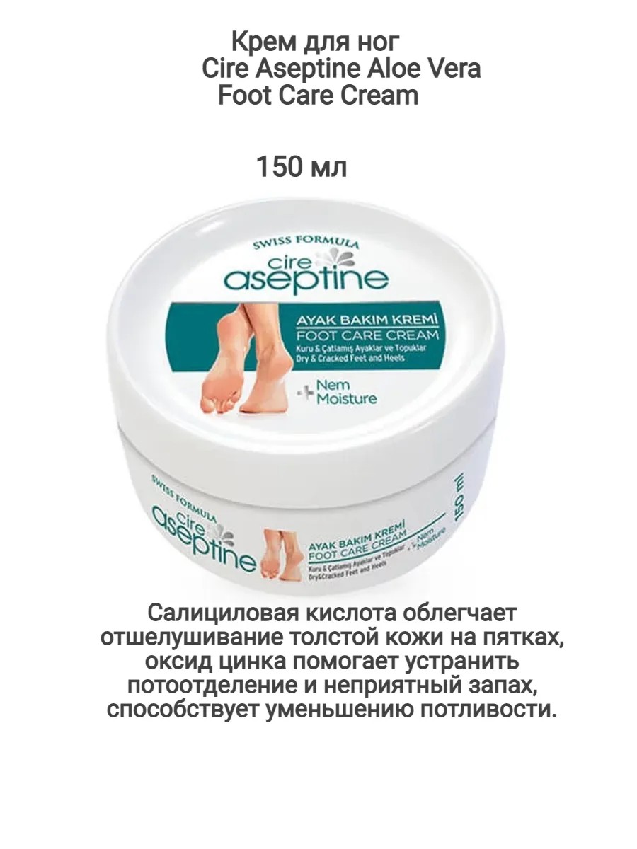 Cire Aseptine Крем для ухода за ногами с Алоэ Вера, 150мл
