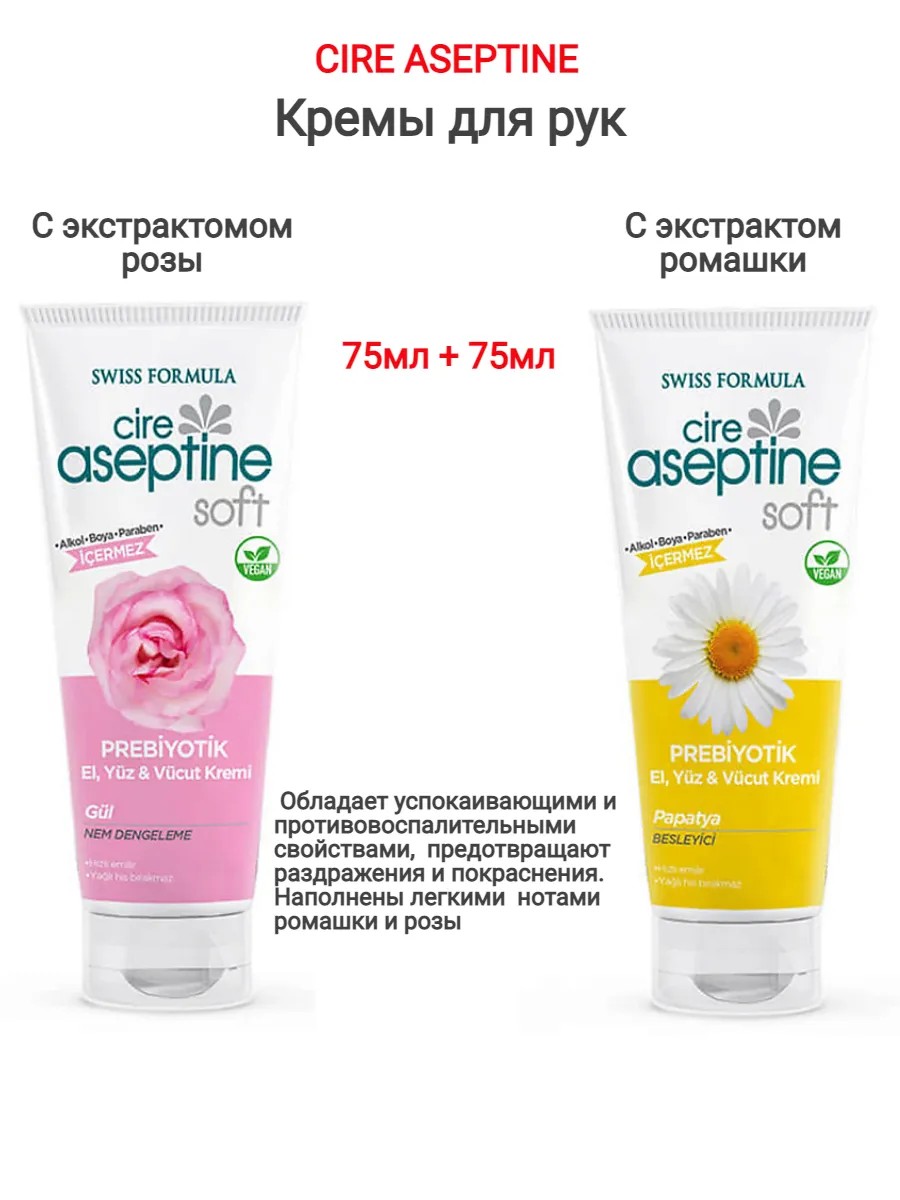 Cire Aseptine Кремы для рук Роза и Ромашка 2х75 мл