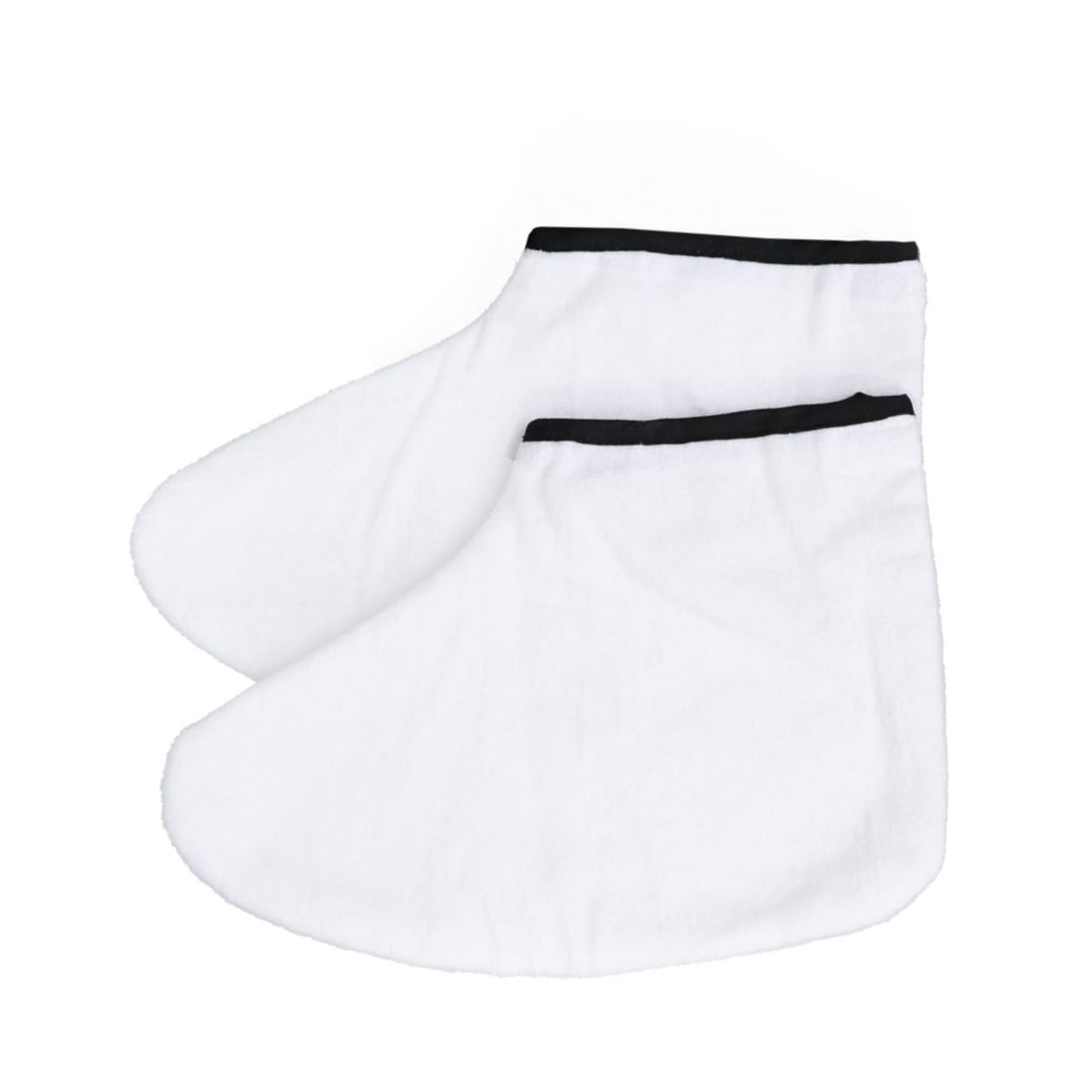 The package includes 1 pair of foot cover socks. Features: - Color: White. - Material: Waxed cotton mittens. - Size: Approximately 29x20cm feet. - Easy-to-put-on waxed sock. - Keeps the wax warm on your feet after a paraffin soak to help maximize moisture absorption, providing good coverage for your waxed feet. - Ideal for use with paraffin bath heaters, spa wax heaters, and paraffin wax foot covers. - Suitable for professional salon paraffin wax, whether for spa or home use. : Convenient and easy to put on. Wax sock. Keeps the wax warm on your feet after a paraffin bath to help maximize moisture absorption, providing good coverage. Bath foot cover. Made of cotton fabric with a cotton lining.