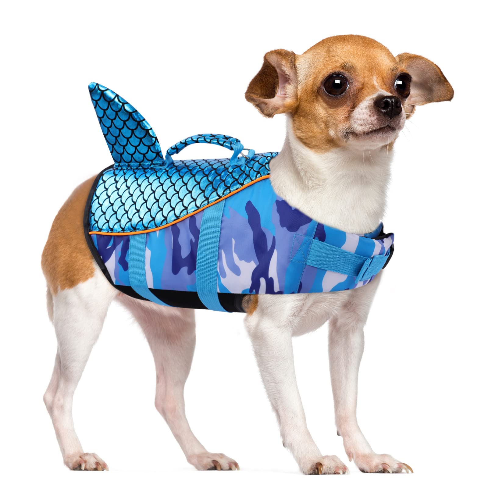 Like people, dogs like to have fun in the water and swimming, but all breeds don't know how to swim, especially if they don't live near the water.However, if your dog wears these round jackets, he feels safer and safer and swims like a fish in the water.Hardened properties: good flotation The solid handle reflective tapes The fortification loop bright colorComfortable and safeThese life jackets for small and medium-sized dogs are equipped with fluffy neck and belly tapes, three adjustable straps ensure a tight-fitting and comfortable fit for puppies.Handle and useful D-ringThe dog swimming vest is equipped with a handle with which you can lead your dog to swim for the first time or get it out of the water quickly and easily in an emergency If you want to go for a walk on the beach and avoid the dog going away, you can conveniently and safely attach a leash to the D-ring.Reflective and fashionableA series of shiny fish scales and funny shark fins are added to the swimming aid, how beautiful!The attached reflex strips improve visibility so that you can recognize your pet in the water.Ripstop fabric and good buoyancyOber fabric consists of 600d oxford ripstop, ripstop and drying quickly The floatable foam filling from EVE offers the buoyancy that your furry friend needs If you have fun in the water with your dog, this life jacket protects him.Pay attention to the sizeDog parents, please remember to measure the chest, the neck circumference and the back length of your dog before selecting a size.Please do not select the size according to the weight of the dog.If your dog is between the two sizes, please choose a larger size.Wie Menschen haben Hunde gerne Spaß im Wasser und schwimmen, aber alle Rassen wissen nicht, wie man schwimmen soll, besonders wenn Sie nicht in der Nähe des Wassers leben. Wenn Ihr Hund jedoch diese Rundenjacken trägt, fühlt er sich sicherer und sicherer und schwimmt wie ein Fisch im Wasser. Gehärtete Eigenschaften: Gute Flotation Der feste Griff Reflektierende Bänder Die Befestigungsschleife Grelle FarbeBequem und sicherDiese Schwimmwesten für kleine und mittelgroße Hunde sind mit flauschigen Hals- und Bauchbändern ausgestattet, drei verstellbare Träger sorgen für eine eng anliegende und bequeme Passform für Welpen. Griff und nützlicher D-RingDie Hundeschwimmweste ist mit einem Griff ausgestattet, mit dem Sie Ihren Hund beim ersten Schwimmen führen oder ihn im Notfall schnell und einfach aus dem Wasser holen können Wenn Sie am Strand spazieren gehen und vermeiden möchten, dass der Hund wegläuft, können Sie bequem und sicher eine Leine am D-Ring befestigen. Reflektierend und modischEine Reihe von glänzenden Fischschuppen und lustigen Haifischflossen werden der Schwimmhilfe hinzugefügt, wie schön! Die angebrachten Reflexstreifen verbessern die Sichtbarkeit, sodass Sie Ihr Haustier im Wasser erkennen können. Ripstop-Gewebe und guter AuftriebOberstoff besteht aus 600D Oxford Ripstop, Ripstop und schnell trocknend Die schwimmfähige Schaumstofffüllung von EVE bietet den Auftrieb, den Ihr pelziger Freund braucht Wenn Sie mit Ihrem Hund Spaß im Wasser haben, schützt diese Schwimmweste ihn. Achten Sie auf die GrößeHundeeltern, bitte denken Sie daran, den Brustumfang, den Halsumfang und die Rückenlänge Ihres Hundes zu messen, bevor Sie eine Größe auswählen. Bitte wählen Sie die Größe nicht nach dem Gewicht des Hundes. Wenn Ihr Hund zwischen den beiden Größen liegt, wählen Sie bitte eine größere Größe.CITÉTOILE Hundeschwimmweste Hai mit Griff und Reflektierend, Schwimmweste für Kleine Mittlere und Große Hunde, Dog Life Jacket Schützen Sie Hunde beim Schwimmen im Meer See Fluss, Blau, L L Blau Camo