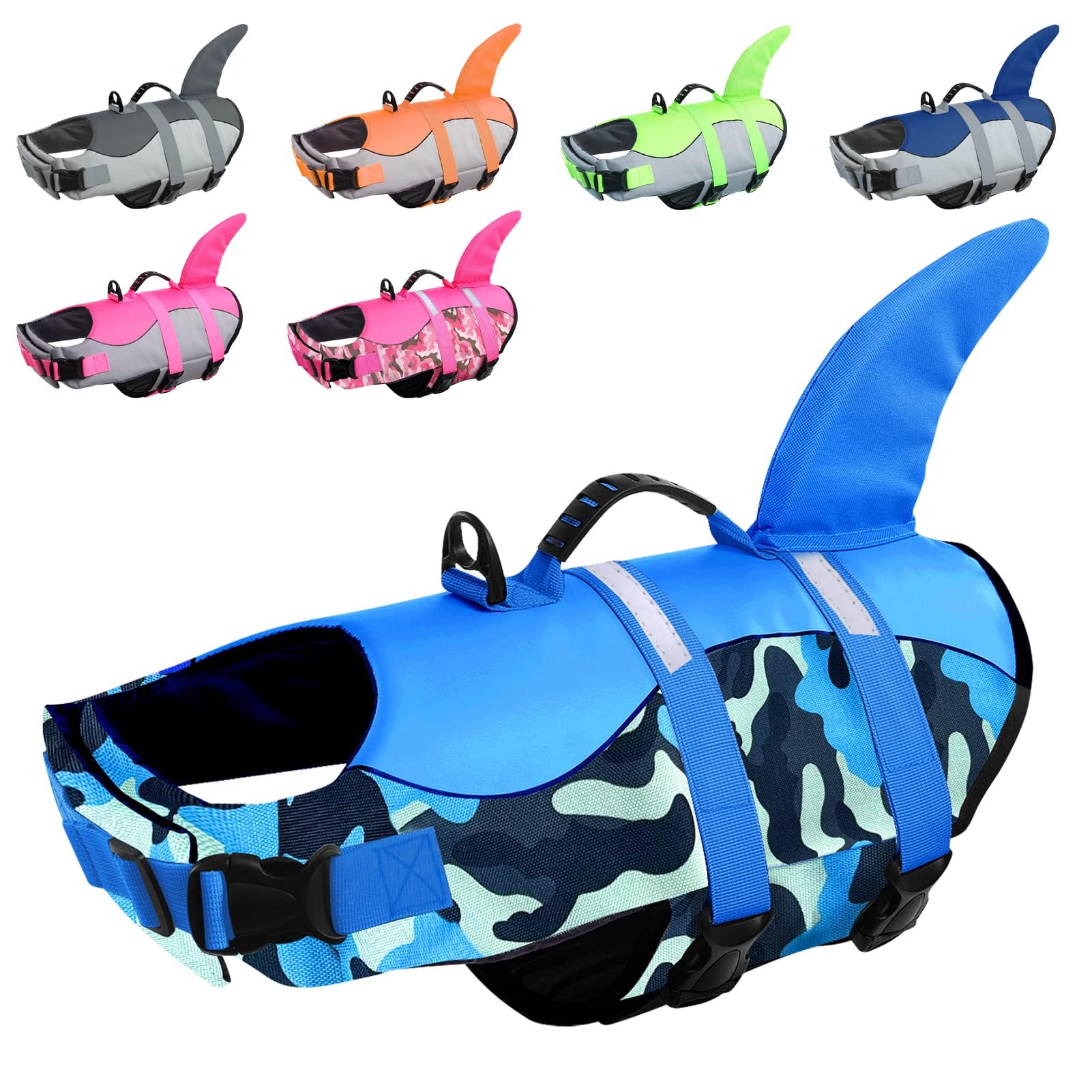 Fashionable life jacket: This stylish dogs swimming jacket has shark patterns and camouflage, is more unique and will not get out of fashion.And then the bright color makes it easier to find your dog and make it better visible to boats or other water sports fans.Citétoile's dog vest is the best choice.For most breeds, there are 6 sizes to choose from (XS-XXL) that are available for most breeds.Be sure to measure your pet before buying and choose a size that fits its size area to ensure that its new life jacket offers the right fit and the right buoyancy.Professional design, safer: The dog swimming vest is equipped with reflective stripes with which you can better recognize your dog in the water.And the strong grip helps to get the dog out of the water or to lead it to swim.There is still a loop that you can use to attach a lanyard so that your dog cannot go far.Guarantee the dog's safety well: the stable Velcro fasteners around the belly and neck, which keep the life jacket safely in place Adjustable straps and side buckles not only prevent the vest in the water, but also simply change the fit and quickly remove the vest The lifeguards secure the dog and gives him confidence in the water.Excellent buoyancy and durability: Our life jacket is made of polyester fiber, which dries quickly, is soft and does not rub on dog skin.The three fully swimming foams, which can enclose the dog's body well, give it a good buoyancy and give it a good position to swim in the water.Modische Schwimmweste: Diese stilvolle hunde schwimmweste verfügt über Haifischmuster und Tarnung, ist einzigartiger und wird nicht aus der Mode kommen. und dann erleichtert die leuchtende Farbe das Auffinden Ihres Hundes und macht ihn auch für Boote oder andere Wassersportfans besser sichtbar. Die Hundeschwimmweste von CITÉTOILE ist die beste Wahl. Für die meisten Rassen geeignete Größen: Es stehen 6 Größen zur Auswahl (XS-XXL), die für die meisten Rassen verfügbar sind. Messen Sie Ihr Haustier unbedingt vor dem Kauf und wählen Sie eine Größe, die zu seinem Größenbereich passt, um sicherzustellen, dass seine neue Schwimmweste die richtige Passform und den richtigen Auftrieb bietet. Professionelles Design, sicherer: Die hundeschwimmweste ist mit reflektierenden Streifen ausgestattet, mit denen Sie Ihren Hund im Wasser besser erkennen können. Und der starke Griff hilft, den Hund aus dem Wasser zu holen oder ihn zum Schwimmen zu führen. Es gibt immer noch eine Schlaufe, mit der Sie ein Schlüsselband befestigen können, damit Ihr Hund nicht weit gehen kann. Garantieren die Sicherheit des Hundes gut: Die stabilen Klettverschlüsse um Bauch und Hals, die die Schwimmweste sicher an Ort und Stelle halten Verstellbare Riemen und seitliche Schnallen verhindern nicht nur, dass sich die Weste im Wasser ablöst, sicherer, sondern ändern auch einfach die Passform und entfernen die Weste schnell Die Rettungswesten sichert den Hund und gibt ihm Vertrauen im Wasser. Hervorragender Auftrieb und Langlebigkeit: Unser Schwimmwesten besteht aus Polyesterfaser, die schnell trocknet, weich ist und nicht an Hundehaut reibt. Die drei voll schwimmfähigen Schäume, die den Körper des Hundes gut umschließen können, geben ihm einen guten Auftrieb und geben ihm eine gute Position, um im Wasser zu schwimmen.CITÉTOILE Schwimmweste Hunde Hai, Leicht und Sicher für Wassersport, hundeschwimmweste mit Griff und Reflektierend für Kleine Mittlere und Große Hunde, Blau Tarnung, XL XL Blau TarnungBlau
