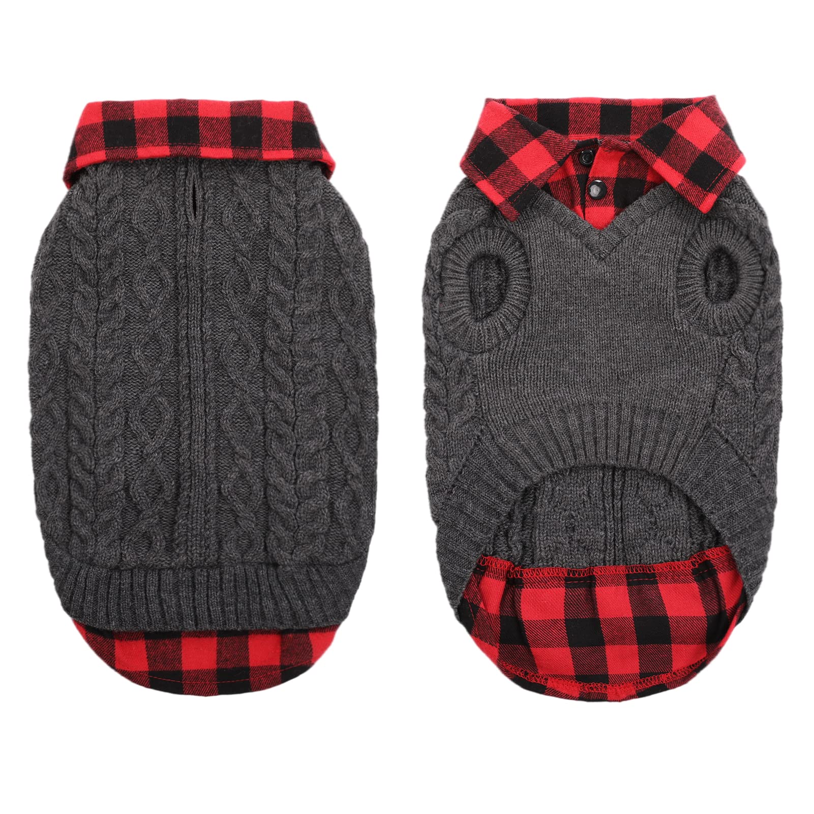 Gift for pets: Our dog sweaters are available in 5 sizes (XS-XL) to fit pets of all sizes.The dog sweater is available in three colors (red, pink, gray) and is perfect for festivals, holidays and everyday life.Creative design: Our dog sweaters are equipped with linen holes on the back, where you can attach a collar or a leash.Delicate pet coats with plaid and cable patterns offer endless fashion for pets.Inside & outdoors dog sweater: Our puppy clothing has turtleneck and an elastic hem.The stretch material adapts to the neck, chest and belly of your pet, offers your pet to full protection and keeps you warm at all times.Classic checkered design: Our winter dog sweater has a classic checkered patchwork with buttons and ribbed sleeves.Soft and comfortable knitting clothes for pets make your pet look stylish and sweet.Acrylic cable-knitted pussy sweaters: Our dog sweaters consist of acrylic fabric for soft comfort and durability.Dog sweaters fit well with the body of your pet and keep your pet warm in cold weather.