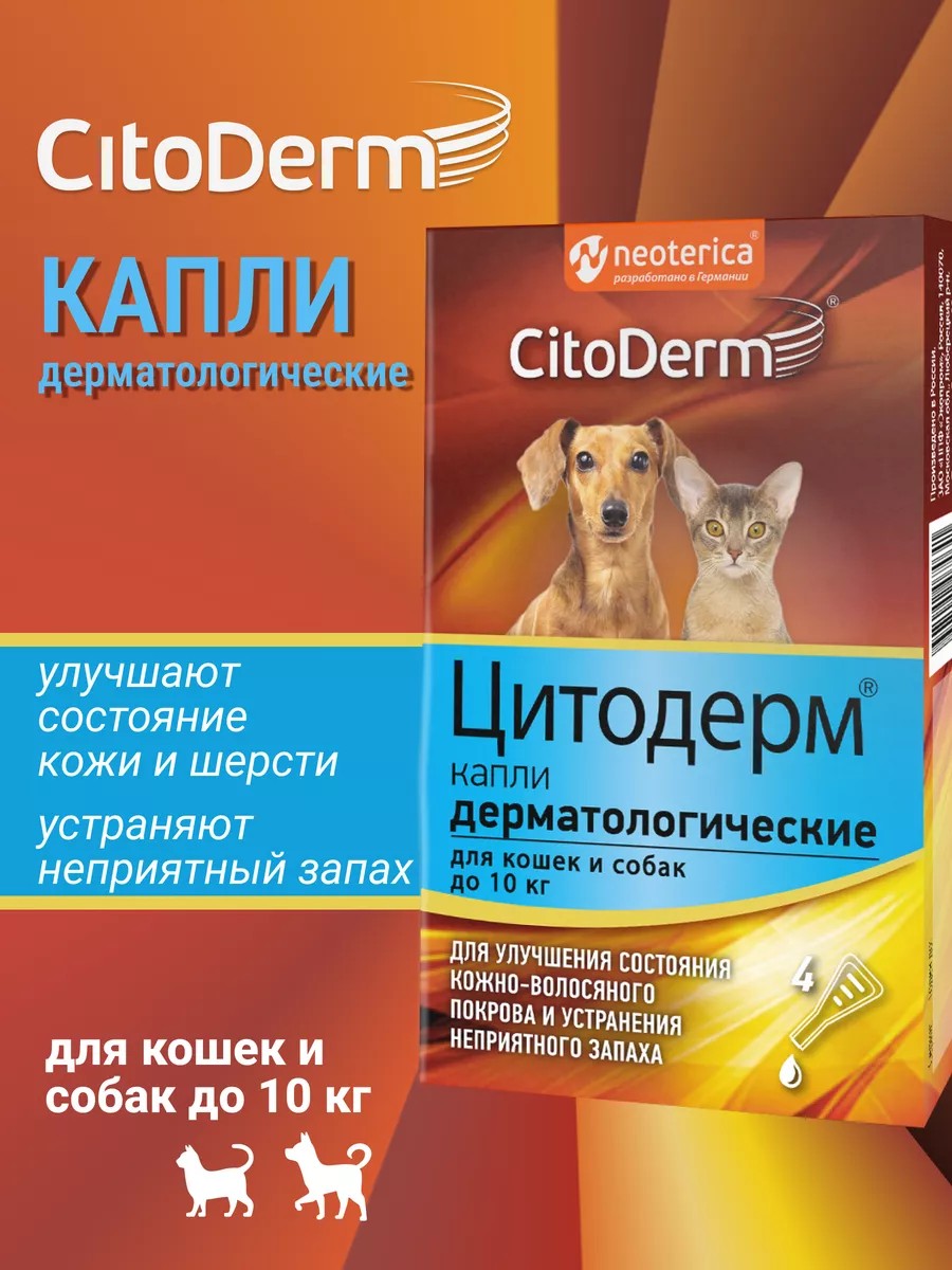 CitoDerm капли дерматологические для кошек и собак до 10 кг, 4 пипетки