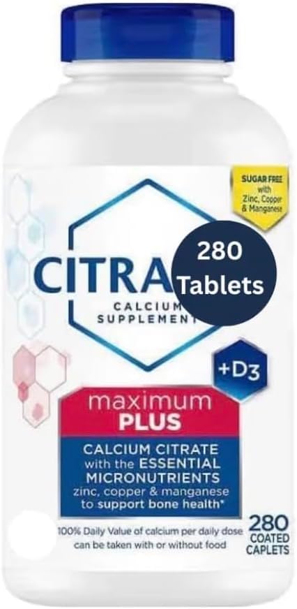 280 Count of Tablets. DEFY BONE AGING: Our calcium supplement includes 1200 mg of Calcium Carbonate and Calcium Citrate and high levels of Vitamin D per serving to help support bone health as part of your overall wellness and fitness regimen just 2 caplets a day. Calcium Carbonate and Calcium Citrate caplets are designed to provide the calcium and vitamin D3 you may not get enough of from the foods you eat each day. Calcium is an essential mineral needed for bone health. Add Cita Slow Release 1200 as part of your daily regimen to help support strong bones. Vitamin D3 promotes calcium absorption.