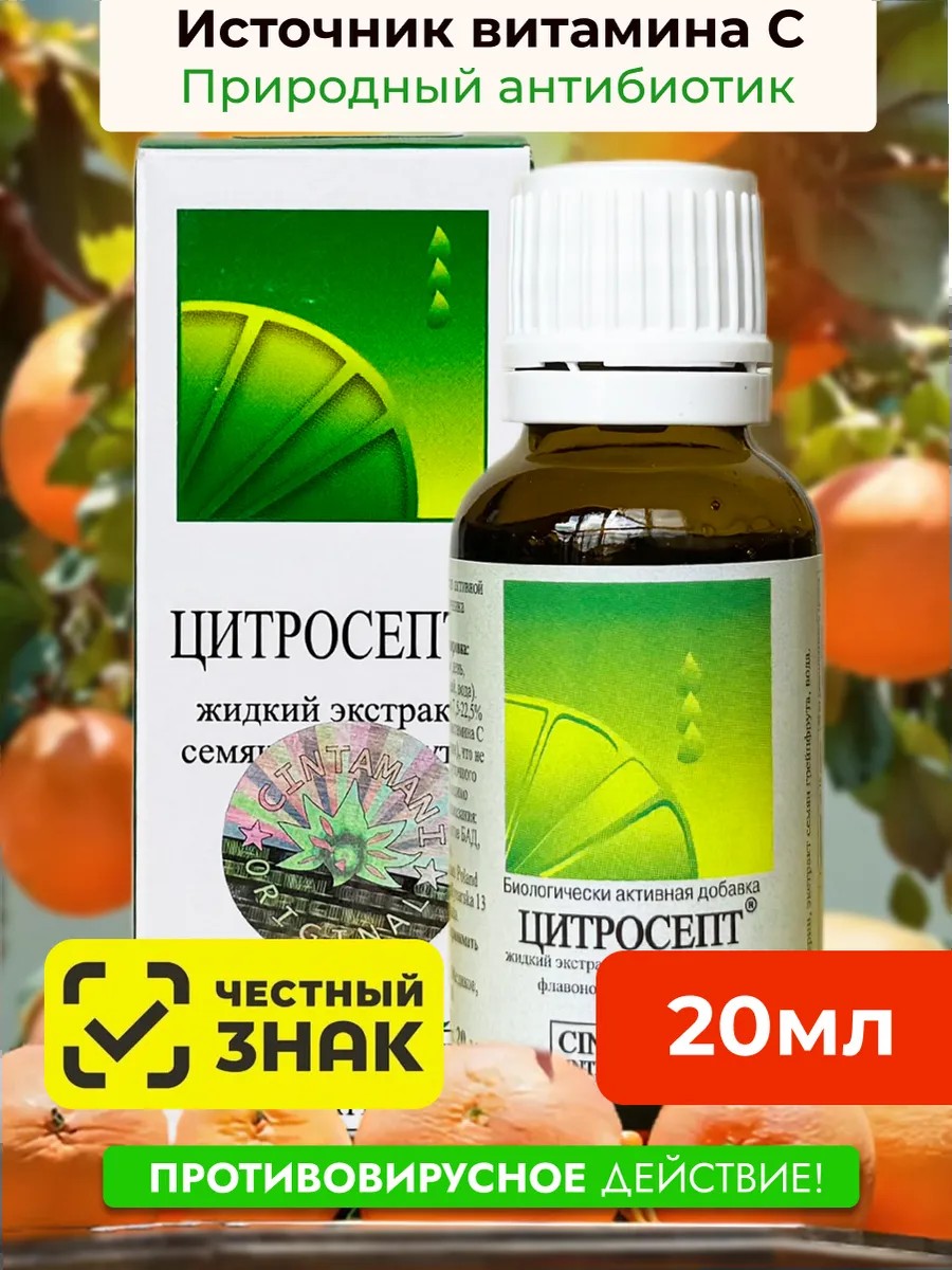 | Комплектация | 1 флакон - 20 мл; Инструкция по применени цитросепт; Капли грейпфрута чинтамани |