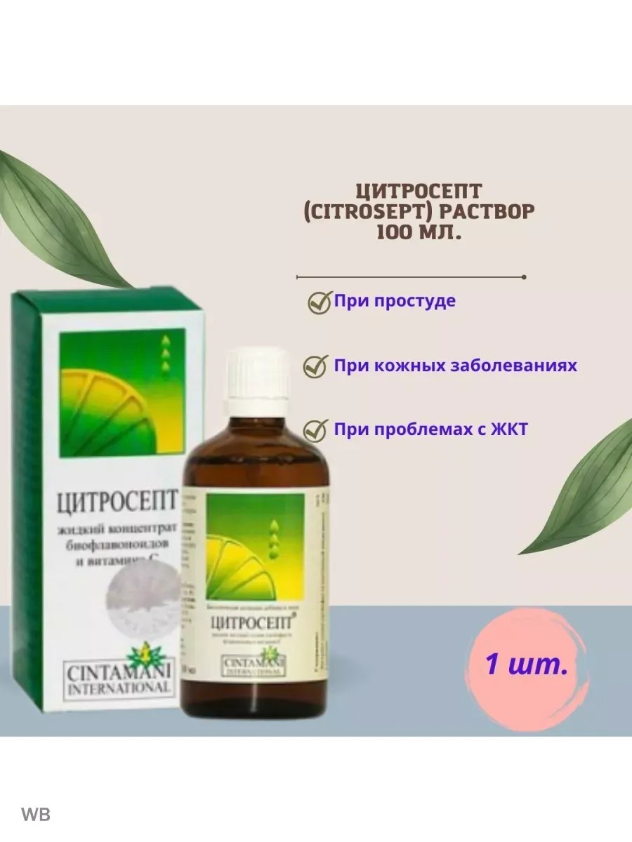 Citrosept is a biologically active food supplement based on grapefruit seed extract. This natural antibacterial preparation has a powerful bactericidal effect and can quickly and effectively combat viruses, fungi, and bacteria. It improves overall health and helps strengthen the immune system. The drops are completely safe and can be used to treat and prevent various illnesses. The bottle has a convenient dropper, making dosing and administration easy. DIRECTIONS FOR USE: Adults: 5-15 drops diluted in 100-200 ml of liquid.