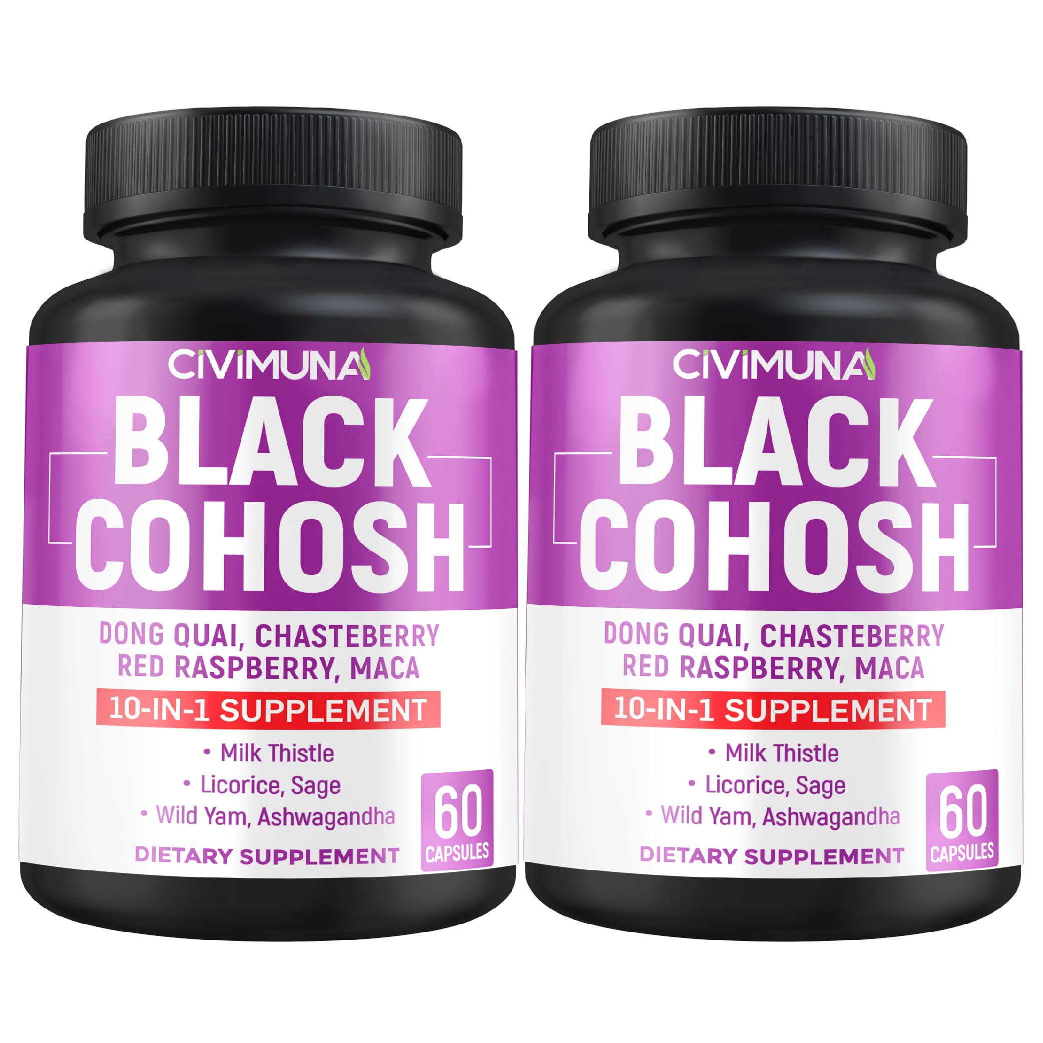 CIVIMUNA Black Cohosh Capsules with Black Cohosh Dong Quai Chasteberry and More - 120 Capsules for 4 Months Supply (Pack of 2)