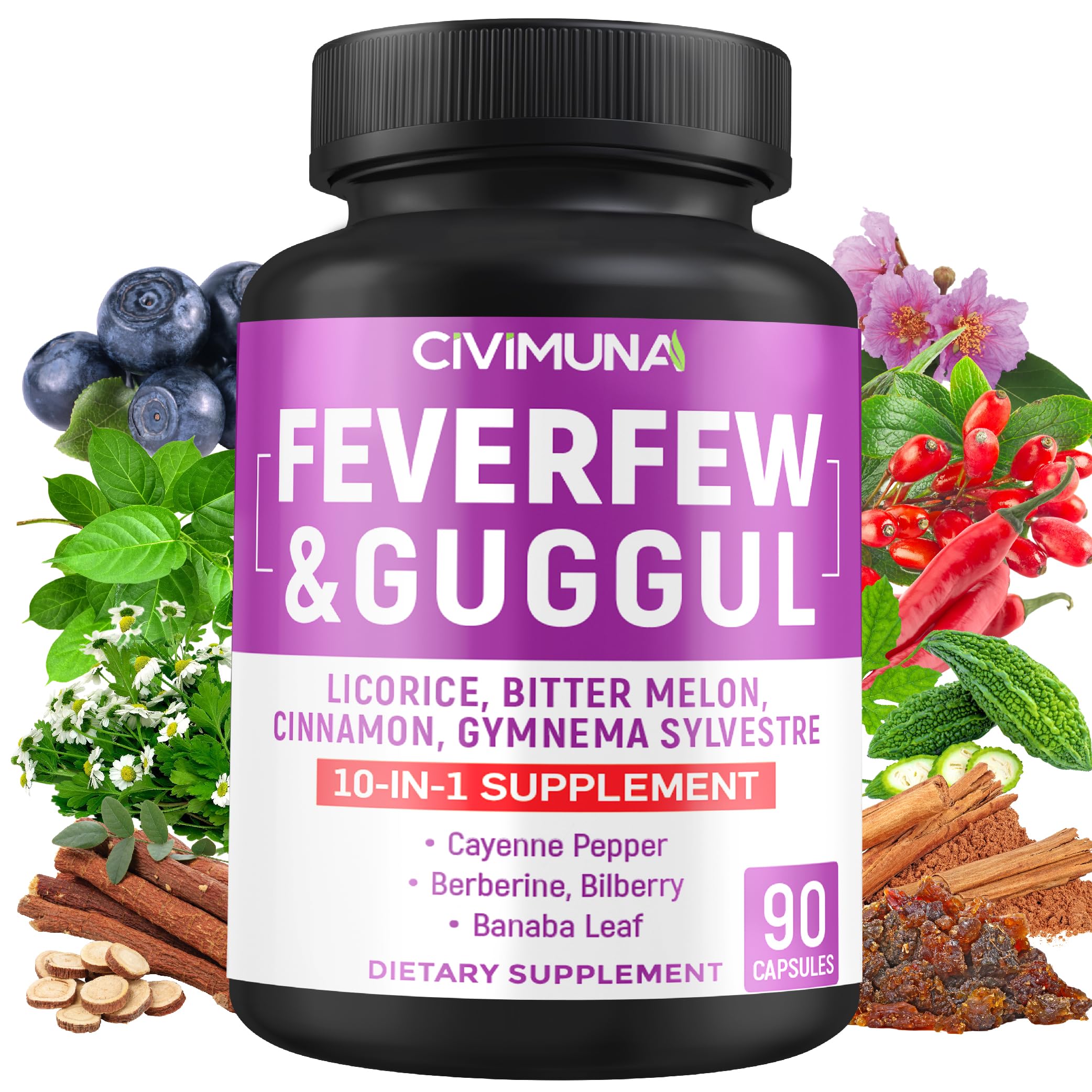 CIVIMUNA Feverfew Capsules with Feverfew Guggul Licorice and More - 90 Capsules for 3 Months Supply