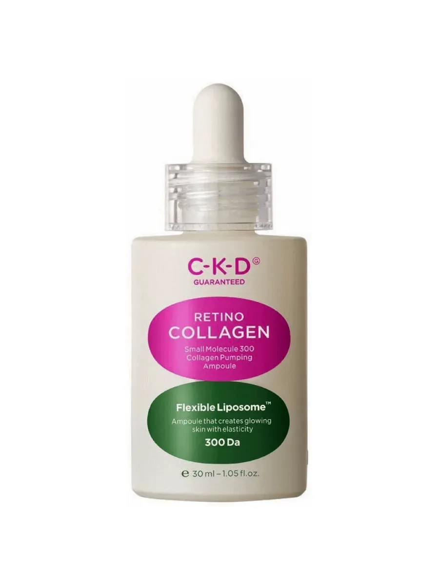 The CKD Retino Collagen Small Molecule 300 Pumping Ampoule is an effective facial skincare product developed using patented FLEXIBLE LIPOSOME technology.