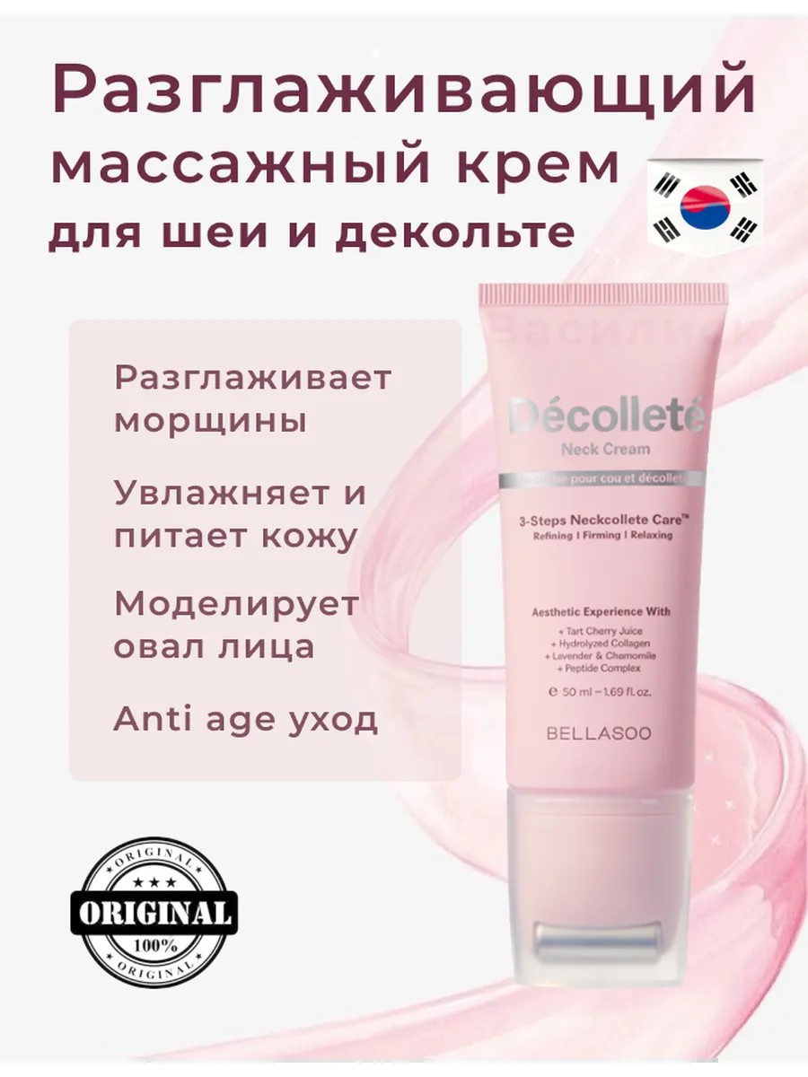 Массажный крем для шеи и декольте Bellasoo Decollete Neck Cream разглаживает кожные заломы и кольца Венеры, повышает тургор и уплотняет тонкую кожу в области декольте.
