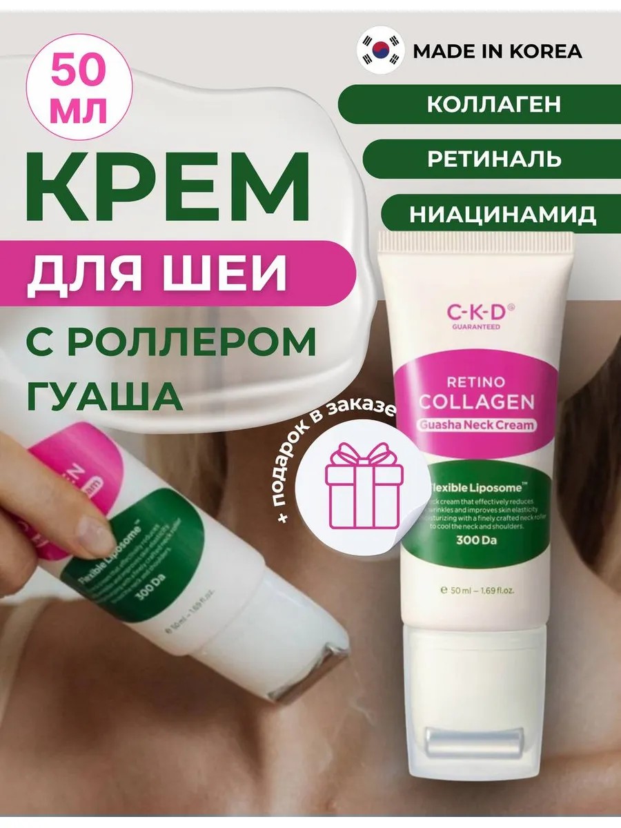 | Полное наименование товара | CKD Крем для шеи роликовый омолаживающий с ретиналем Retino Collagen Small Molecule 300 Guasha Neck Cream, 50мл |