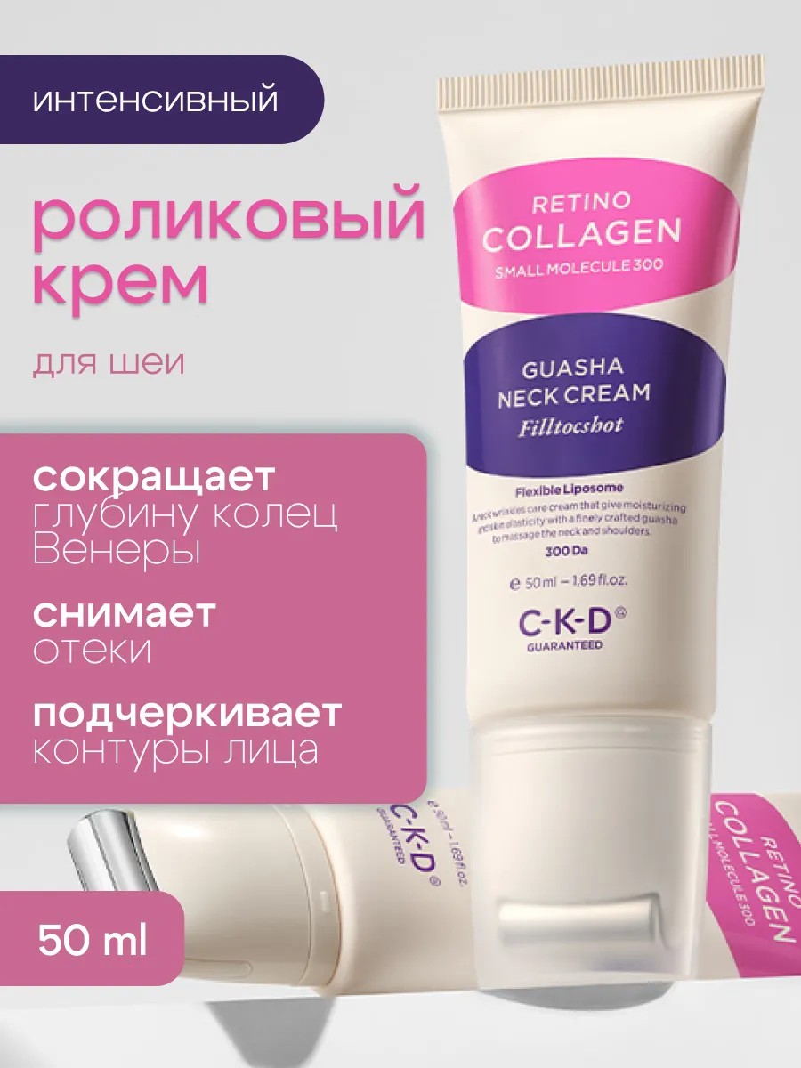 Lifting and rejuvenating neck cream Retino collagen small molecule 300 guasha cream filltocshot, 50 ml tightens the skin, smoothes creases and prevents sagging.