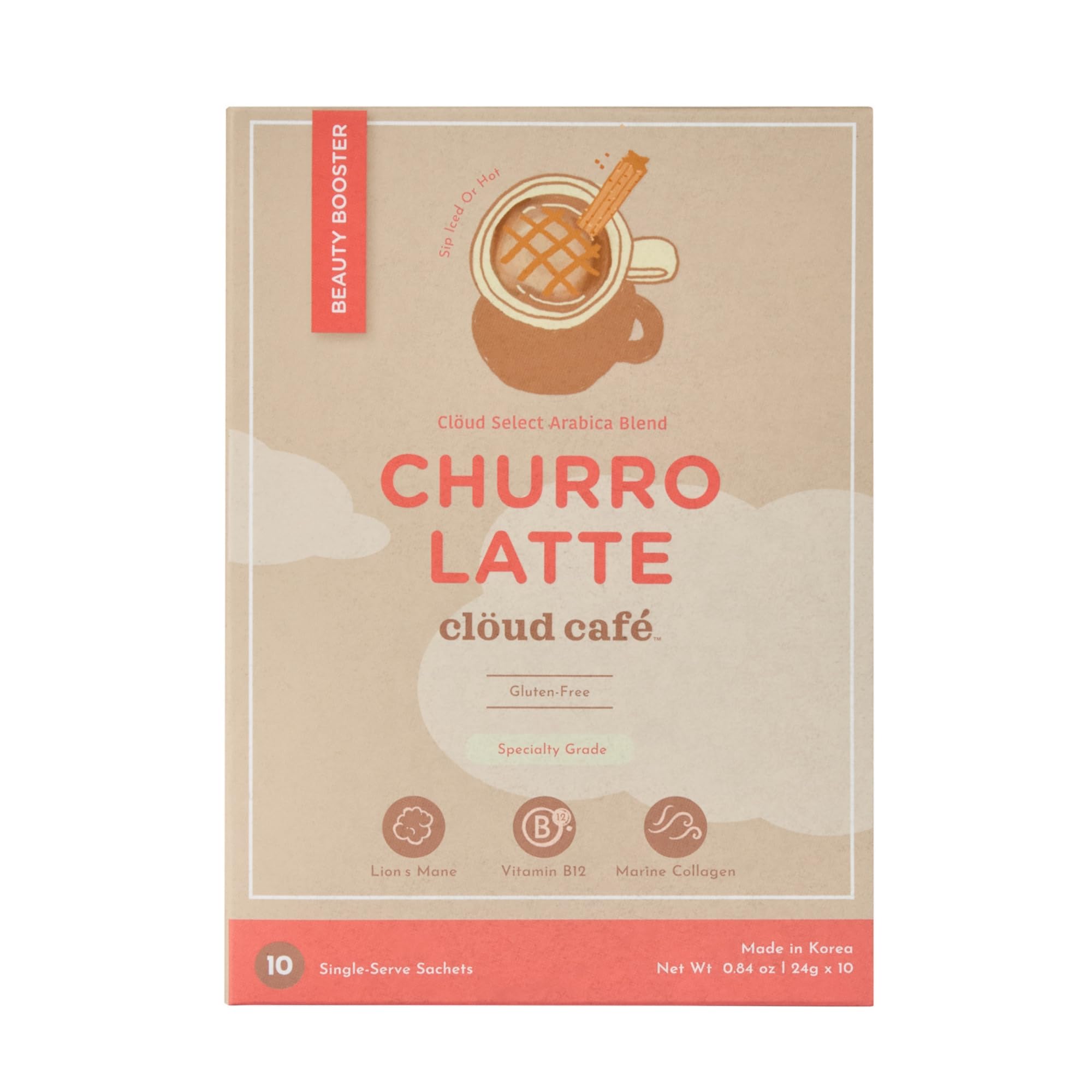 Cl ud Caf Collagen Infused Churro Latte Instant Coffee Packets - Promotes Skin Firmness Hydration & Elasticity Cognitive Function and Immune Support - Single Serve Instant Coffee (10 Sachets)