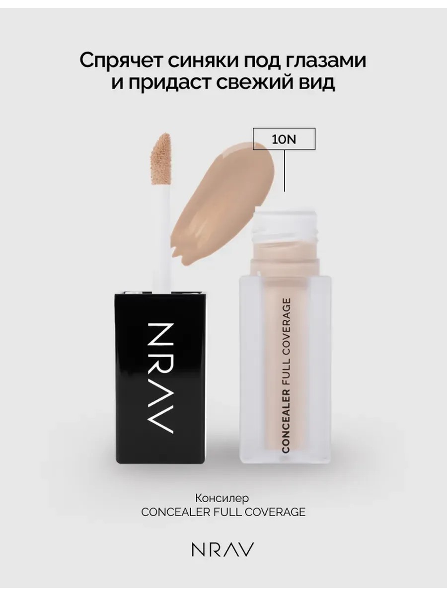 Открой для себя идеальное сочетание ухода и макияжа с нашим консилером для лица CONCEALER FULL COVERAGE из коллекции TRUE TO YOUSELF NRAV, который также подходит для глаз. Никто не узнает, что ты делала прошлой ночью. Еще одна серия, еще пара сообщений подруге, а уже рассвет. Хорошо, что есть он — перекрывающий консилер, который спрячет все следы бессонной ночи. Свежий взгляд гарантирован. Корректор высокой степени покрытия с дышащей формулой идеально ложится и не скатывается в течение дня. Способ нанесения: нанеси с помощью аппликатора на участки, которые необходимо замаскировать, и на кожу под глазами. Растушуй кистью, пальцем или спонжем. Начни с тонкого слоя и добавляй продукт по мере необходимости. Можно наносить точечно или на всё лицо. Лайфхаки: сначала нанеси тон, а после него — консилер. Он ложится строго на тональный крем, а не под него. Корректором для лица можно делать лёгкий контуринг, главное, не забывай растушёвывать средство. Используй консилер под глазами в технике 'перевернутого треугольника': нанеси продукт в форме треугольника, причем нижний угол должен находиться на щеке. Это поможет скрыть темные круги под глазами и создать эффект более высветленной зоны вокруг глаз. Наноси консилер на внутренние уголки глаз — это придаст взгляду более бодрый и открытый вид и скроет эффект усталости. Перекрывающий консилер для лица и глаз — незаменимая часть твоей косметички. Почувствуй себя уверенной и привлекательной каждый день с нашим консилером!