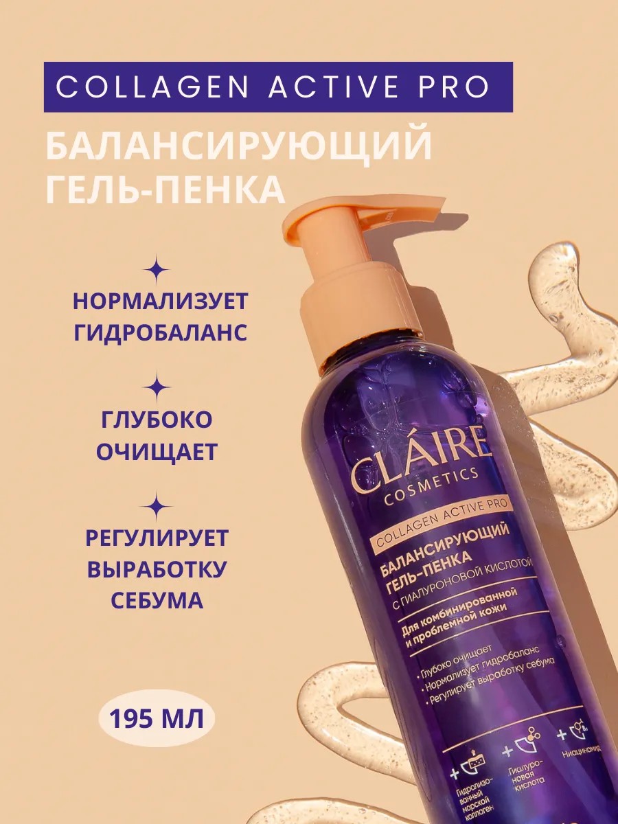 Claire Cosmetics Гель-пенка для умывания балансирующий Collagen Active Pro
