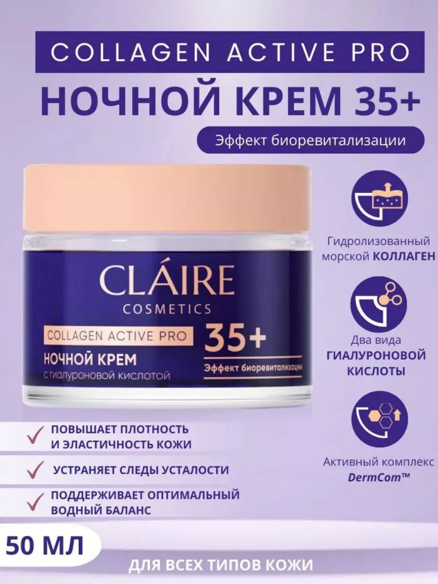 Claire Cosmetics Крем для лица ночной увлажняющий 35+ Collagen