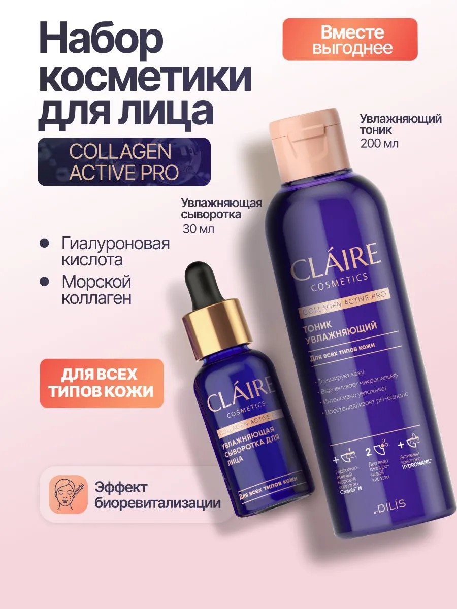 Claire Cosmetics Сыворотка и тоник для лица увлажняющие с коллагеном
