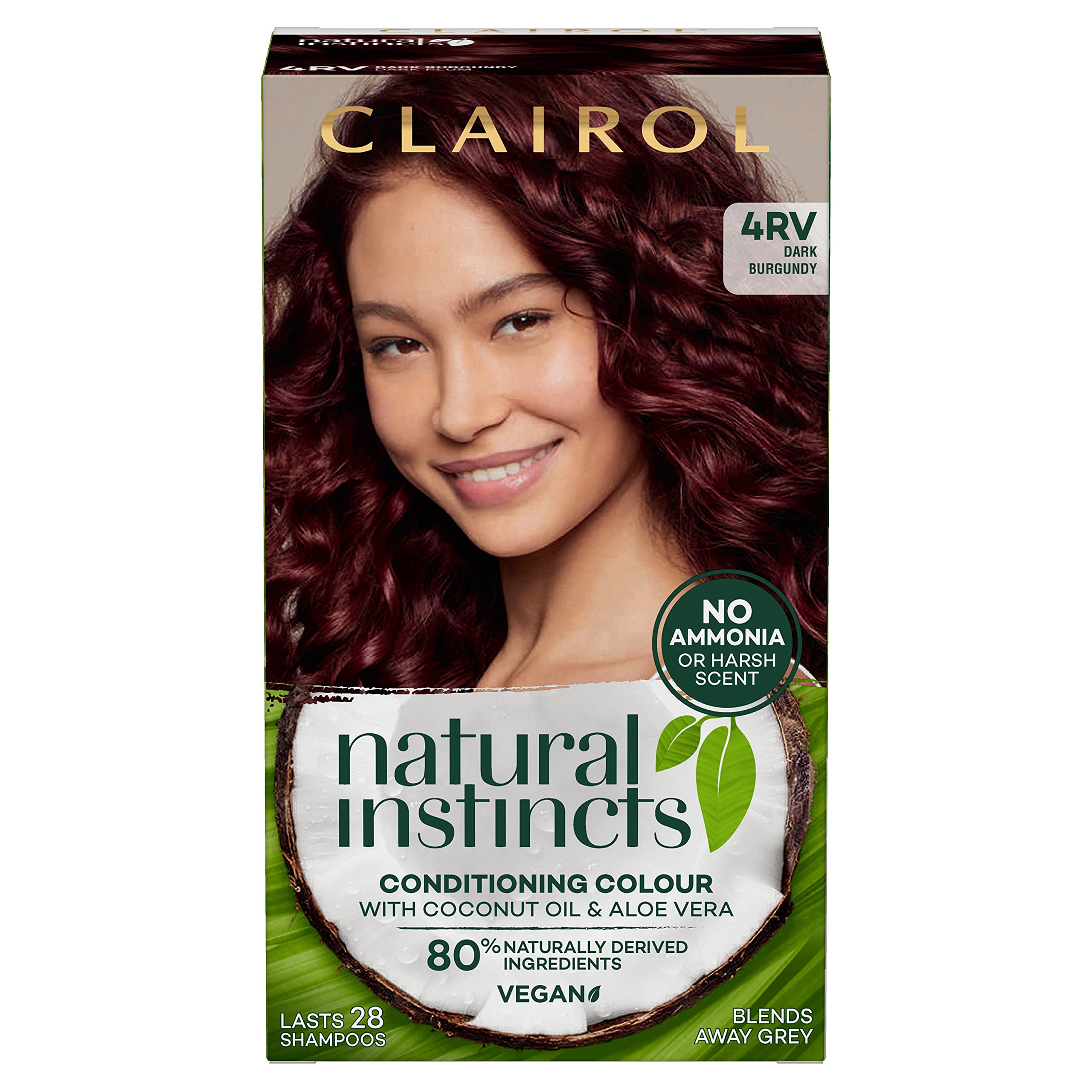Are you new to hair colour or don't want the long-term commitment of a permanent hair dye? Then Clairol has got you covered. Clairol Natural Instincts vegan conditioning colour is a low commitment semi-permanent hair dye for a boost of colour and shine, naturally. Perfect for first-time colourers or if you want to experiment with your shade and blend away greys. Made with 80 Percent naturally ingredients, the formula is gentler to your hair without any compromise on the colour results.The non-permanent formula has coconut oil and aloe vera, and is free from ammonia, leaving your hair looking glossy and feeling healthy. Its non-drip crème formula with no harsh scent is designed to feel like a conditioner and is easily applied to the hair in just 20 minutes without mess. The colour fades gradually and lasts up to 28 washes, with no harsh root line. It is suitable for all hair types and textures. INGREDIENTS Colour Enhancing Crème: Aqua/Water/Eau, Propylene Glycol, Ethanolamine, Cetearyl Alcohol, 2-Methoxymethyl-p-Phenylenediamine, Trisodium Ethylene diamine Disuccinate, Resorcinol, 2-Methylresorcinol, N,N-Bis(2-Hydroxyethyl)-p-Phenylenediamine Sulfate, Citric Acid, m-Aminophenol, Dicetyl Phosphate, Parfum/Fragrance, Sodium Sulfite, Ceteth-10 Phosphate, Steareth-200, 2,4- Diaminophenoxyethanol HCl, Ascorbic Acid, Xanthan Gum, Sodium Hydroxide, Hydroxyethyl-3,4-Methylenedioxyaniline HCl, Titanium Dioxide / (CI 77891), Disodium EDTA, 1-Hexyl 4,5-Diamino Pyrazole Sulfate, Tocopheryl Acetate.Colour Activator: Aqua/Water/Eau, Paraffinum Liquidum/ Mineral Oil/ Huile minerale, Hydrogen Peroxide, Cetearyl Alcohol, Sodium Cetearyl Sulfate, Salicylic Acid, Phosphoric Acid, Disodium Phosphate, Disodium Pyrophosphate, Sodium Stannate, Etidronic Acid.Brilliant Shine Conditioner: Aqua/Water/Eau, Bis-Hydroxy/Methoxy Amodimethicone, Stearyl Alcohol, Cetyl Alcohol, Stearamidopropyl Dimethylamine, Glutamic Acid, Parfum/Fragrance, Benzyl Alcohol, Citric Acid, Benzyl Benzoate, EDTA, Histidine, Cocos Nucifera (Coconut) Oil, Sodium Chloride, Hexyl Cinnamal, Linalool, Magnesium Nitrate, Trimethylsiloxysilicate, Aloe Barbadensis Leaf Juice, Methylchloroisothiazolinone, Magnesium Chloride, Methylisothiazolinone, BHT, Ascorbic Acid, Potassium Sorbate, Sodium Benzoate, Sodium Sulfit. DIRECTIONS Step 1: PREPARE Protect your clothing with an old towel. Wearing the gloves provided in your kit, pour the contents of bottle 1 into bottle 2. Shake thoroughly until fully blended. Step 2: APPLY Starting at the roots, apply colour mixture immediately all over dry, unwashed hair. Work the colour through your hair to ensure full saturation. Leave colour on for 20 minutes. Step 3: FINISH When time has elapsed, rinse until water runs clear. Follow with the deep conditioner in bottle 3. Leave on for 2 minutes. Rinse. Use remaining Colour Treat Conditioner once a week after shampooing. TIPS AND TRICKS: As it is a semi-permanent hair dye, this means that your hair can go darker, stay the same level or you can add a tone, but you cannot lighten or lift your colour. If you want to go lighter or completely cover greys, choose a permanent hair colour. When using a semi-permanent shade, stick to 1 to 2 shades lighter or darker than your natural colour. Colour on top of colour tends to look darker. If in doubt, always choose 1 shade lighter than your current colour. If it’s too light, you can always go darker next time. Finally, if you choose a darker shade, just remember it will take longer to fade as you shampoo. SAFETY WARNING Remember to buy the product 48 hours in advance. Conduct an allergy alert test 48 hours before each time you colour even if you have already used colouring products before. Caution: hair colourants can cause allergic reactions. Read and follow instructions. This product is not intended for use on persons under the age of 16. Temporary “black henna” tattoos may increase your risk of allergy. Do not colour your hair if: - you have a rash on your face or sensitive, irritated and damaged scalp, - you have ever experienced any reaction after colouring your hair, - you have experienced a reaction to a temporary “black henna” tattoo in the past.Healthy-looking colour that shines. Vegan - No animal derived ingredients or by-products. 80 percent Naturally Derived ingredients. Conditioning colour with coconut and aloe vera. No Ammonia or harsh scent.