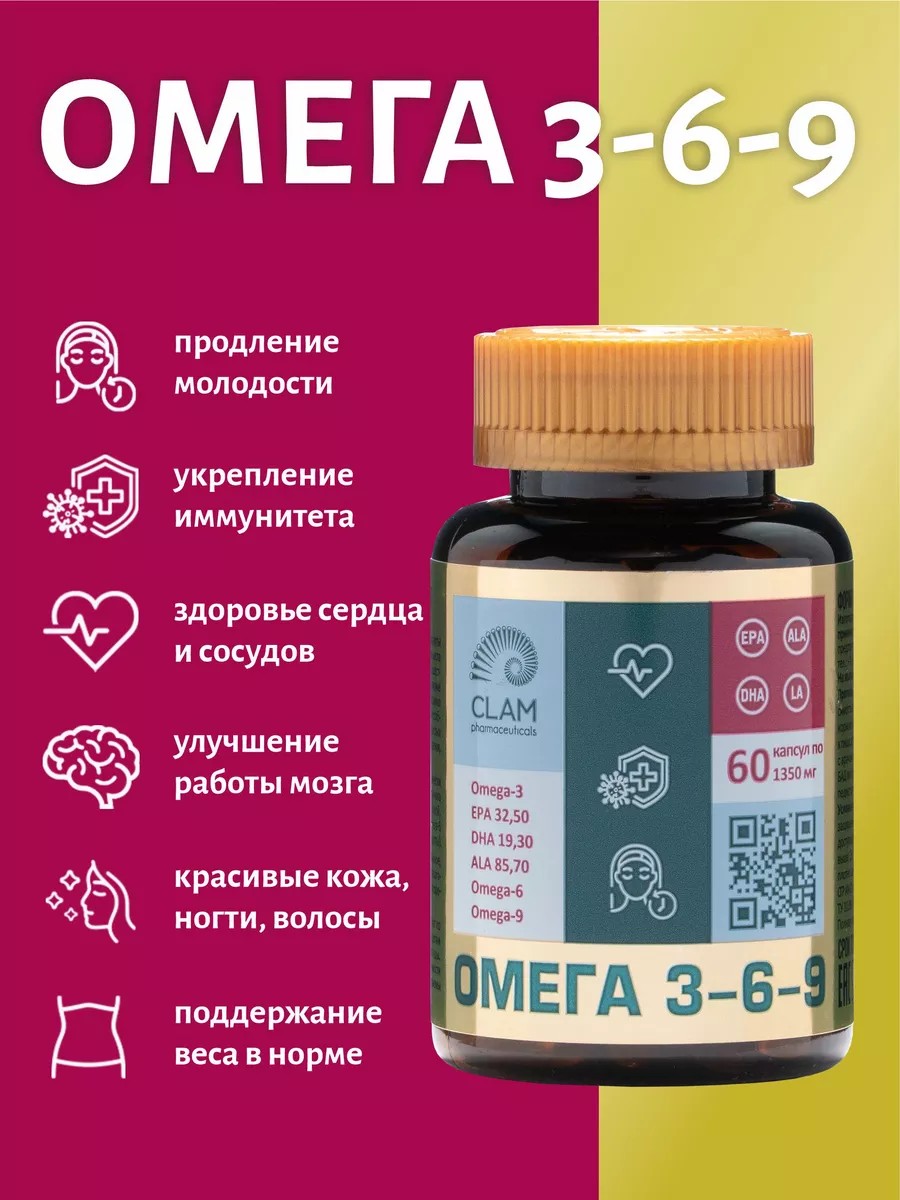 ClamPharm Омега 3-6-9 в капсулах для взрослых и детей Omega 3 6 9