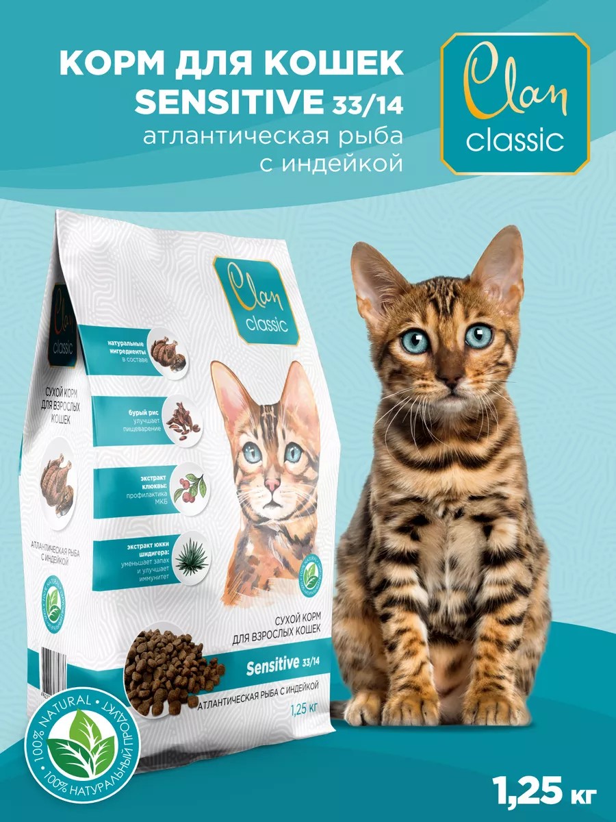 CLAN CLASSIC Корм для кошек Sensitive Рыба и Индейка, 1.25кг