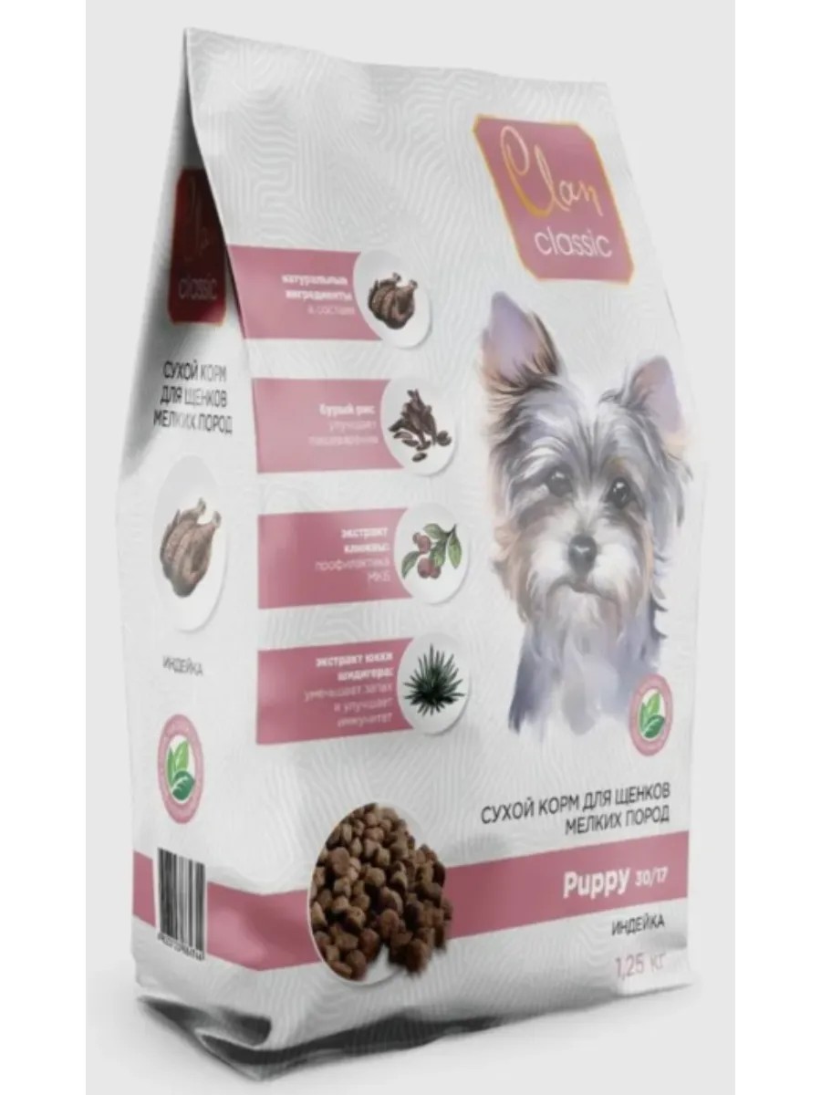 | Полное наименование товара | CLAN CLASSIC Puppy-30/17 для щенков мелких пород Индейка 1.25кг |