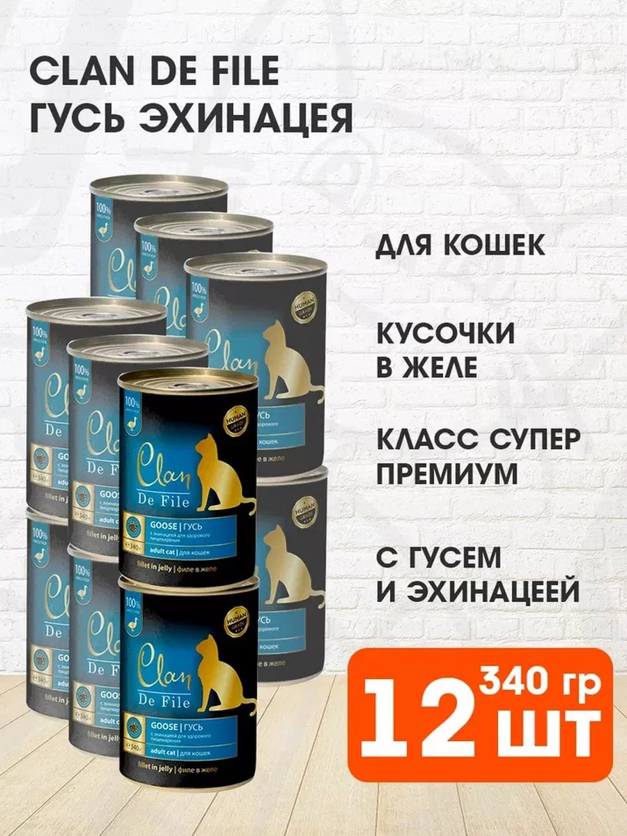 CLAN Корм влажный De File для кошек гусь монобелковй 340 г 12 шт