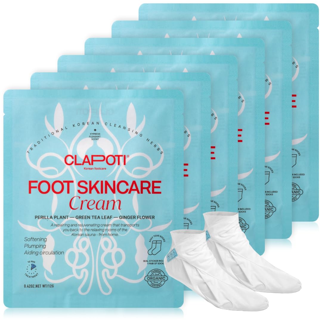 Clapoti Hydrating Foot Mask | K-Beauty | Repairing Treatment with Ginger Green Tea and Cypress | Deep Hydration & Repair 6 pack