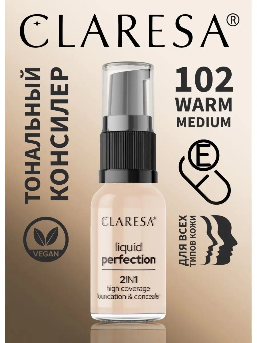 CLARESA Тональная основа и консилер Liquid Perfect №102 WARM MEDIUM