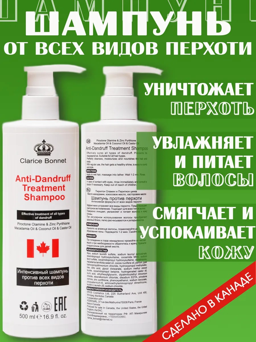 Clarice Bonnet Шампунь от перхоти канадская эффективность, 500 мл
