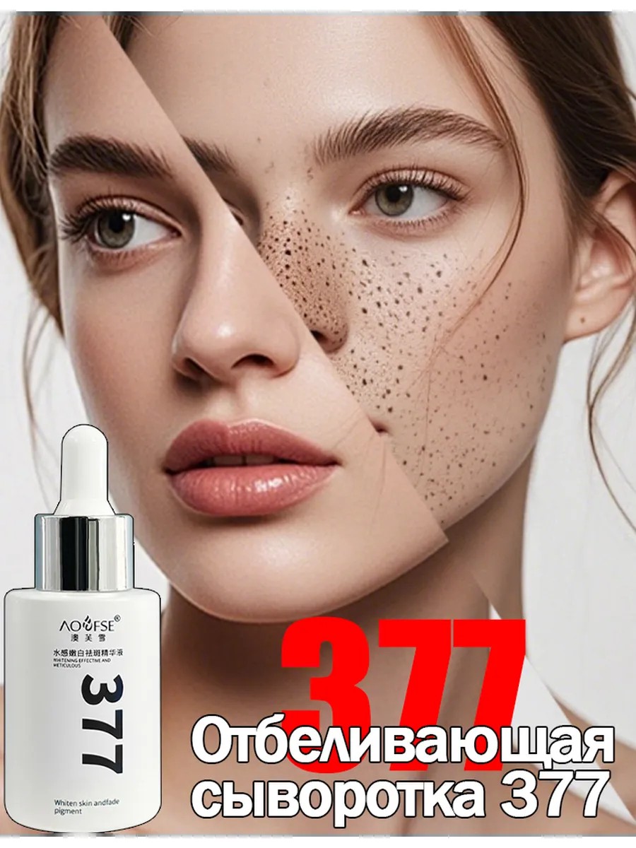 Лёгкая текстура сыворотки быстро впитывается и не оставляет жирного блеска. Подходит для использования как днём, так и вечером. Компонент 377 обладает золотым стандартом отбеливания, а также борется с гликацией, окислением и фотостарением. Формула продукта эффективно устраняет тусклость кожи и помогает забыть о проблеме пигментации.