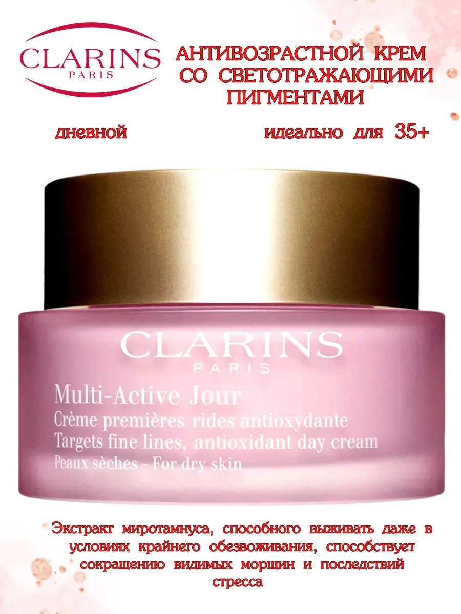 Clarins Multi-Active Антивозрастной Крем со светоотражающими пигментами дневной 50 мл для любого типа кожи для устранения возрастных изменений.