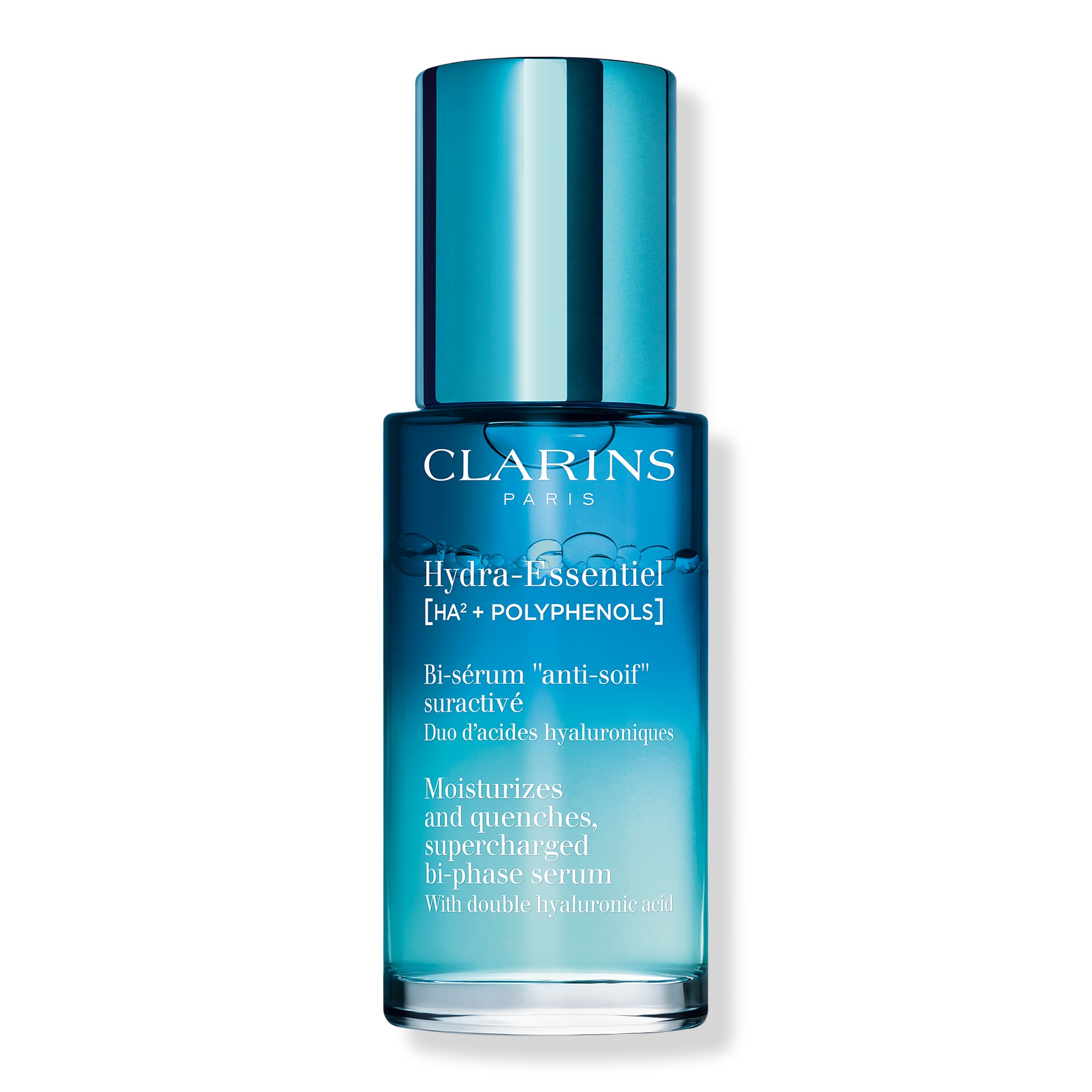 Clarins' Hydra-Essentiel Bi-Phase Face Serum with Double Hyaluronic Acid is a super-quenching bi-phase face serum for all skin types - with Clarins' NEW Hyaluronic Power Complex - plumps in 60 seconds provides 24H hydration.