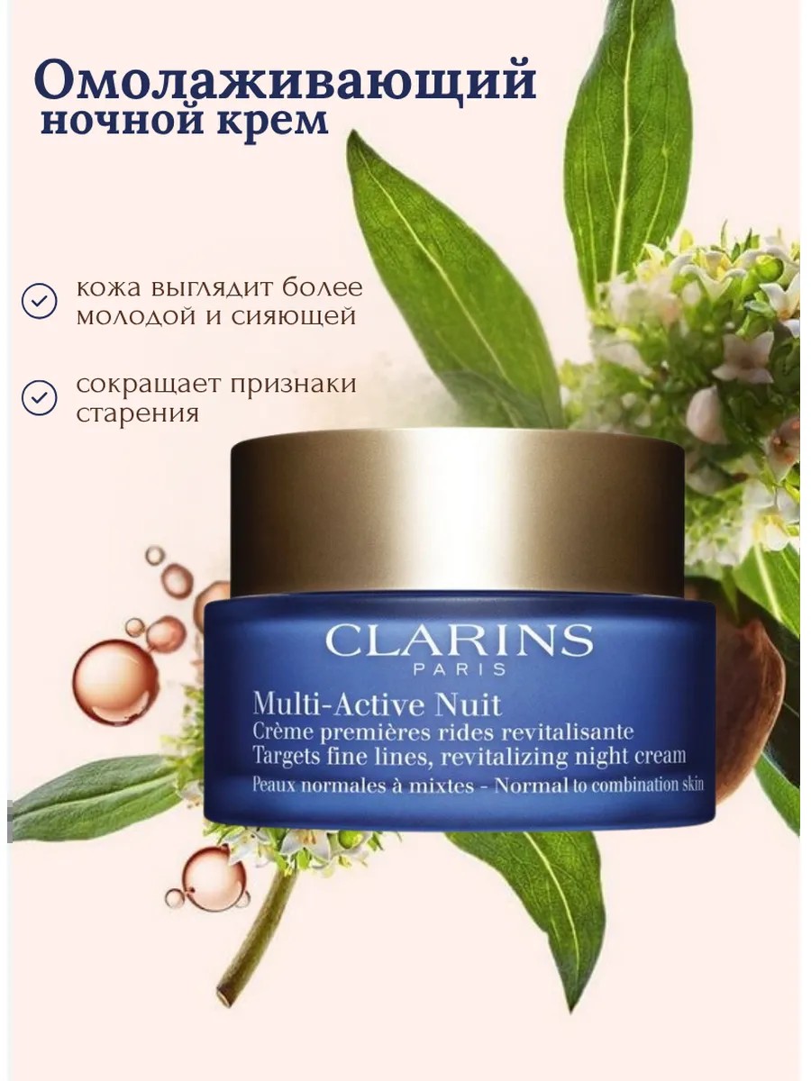 Ночной крем для борьбы с выраженными возрастными изменениями для нормальной и комбинированной кожи Clarins Multi-Active, 50 мл.