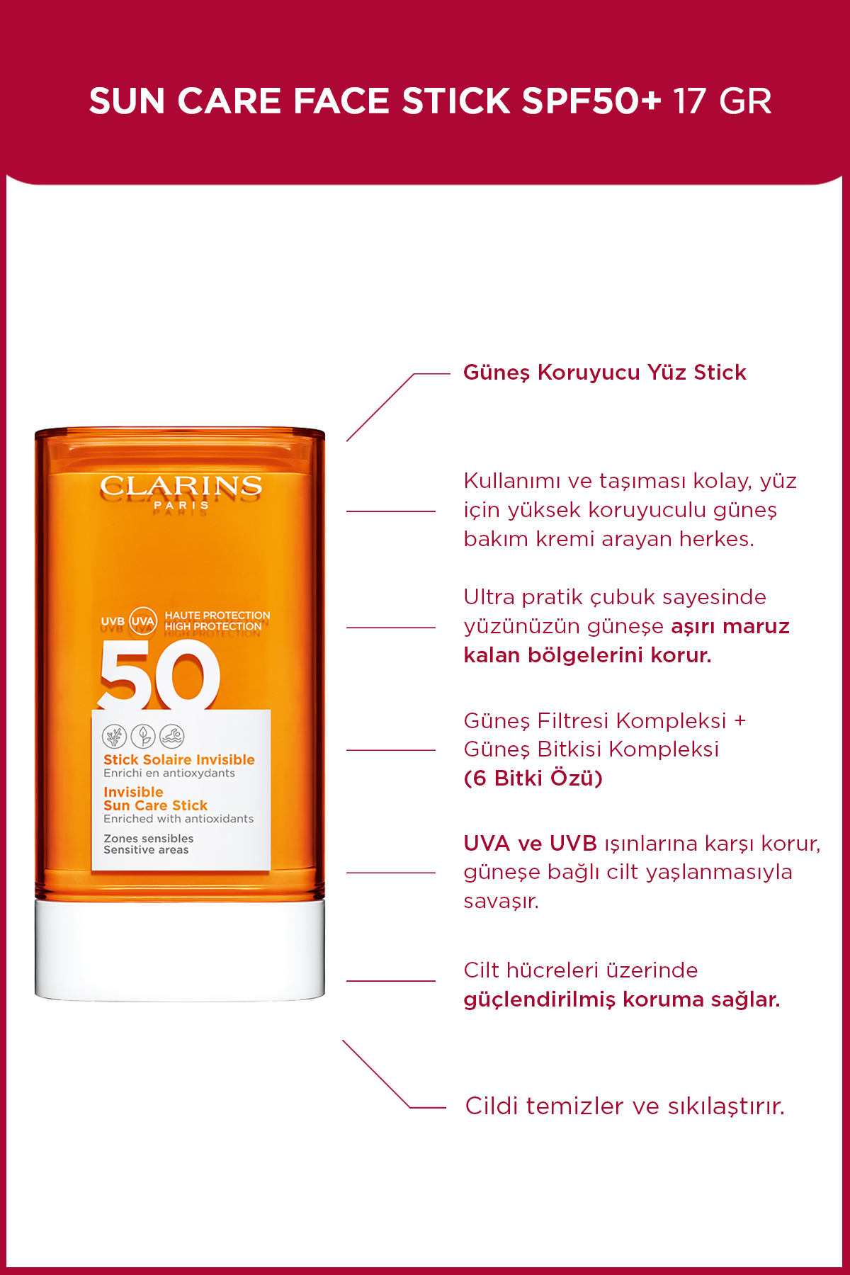 Clarins Sun Face Stick Spf50 17gr - Invisible Sun Care Stick Spf50